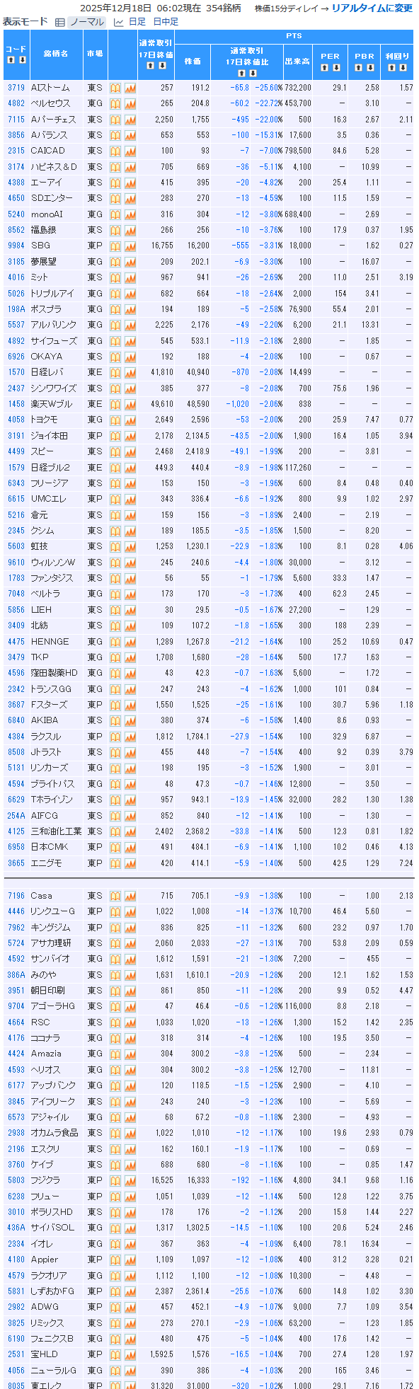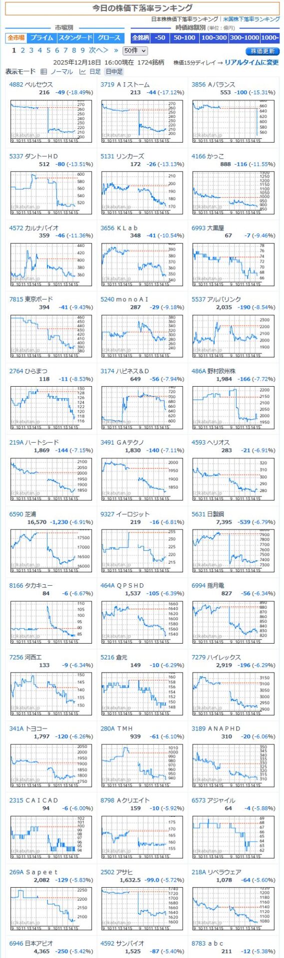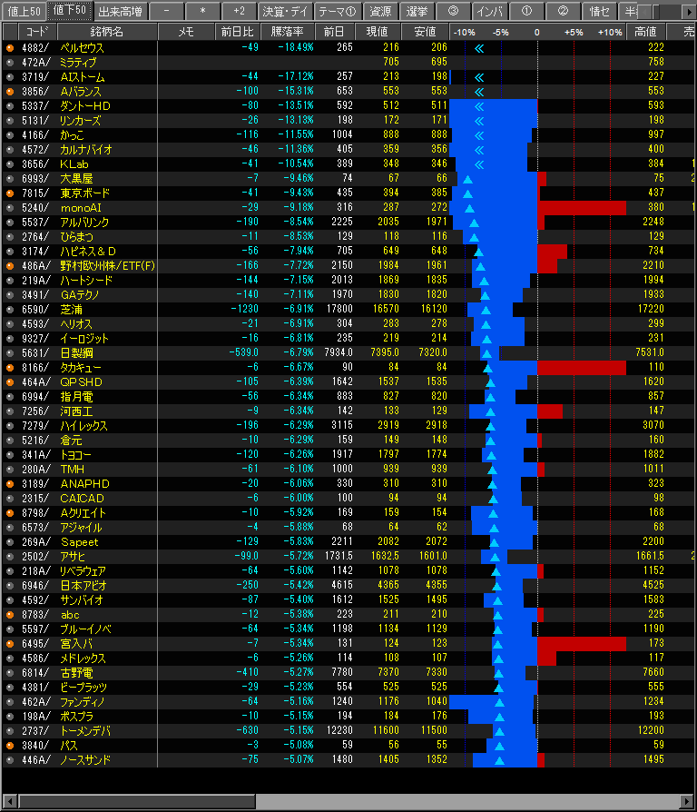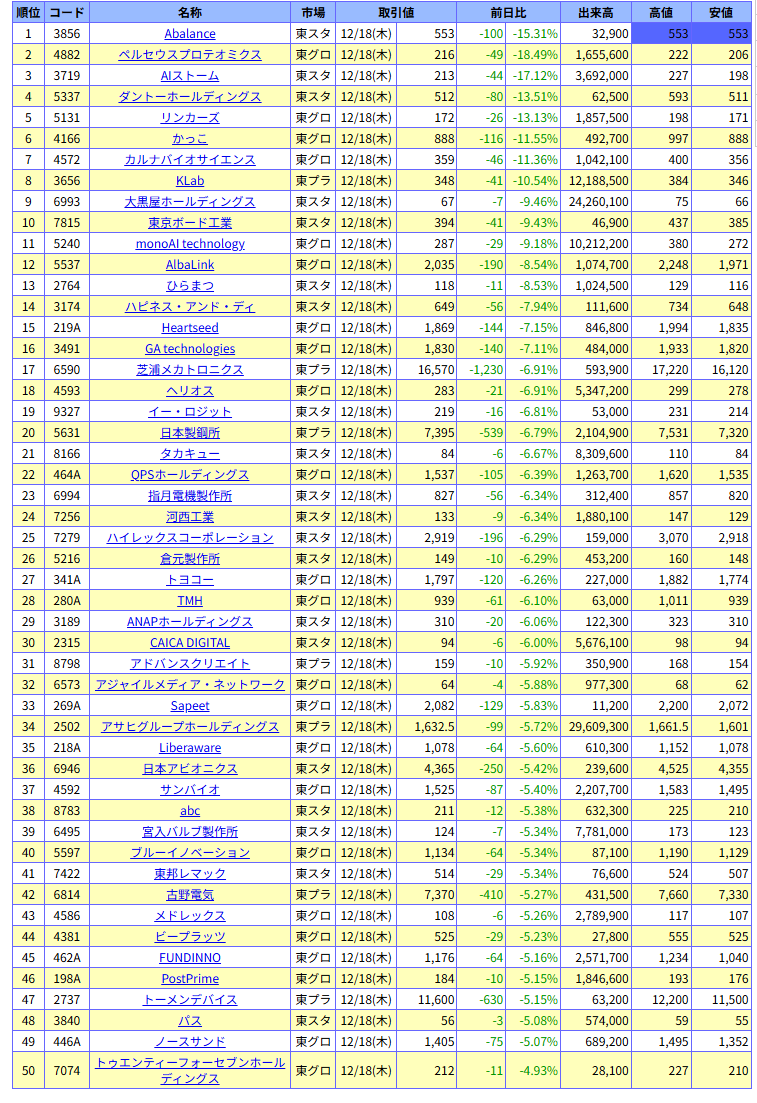 値下がり率ランキング