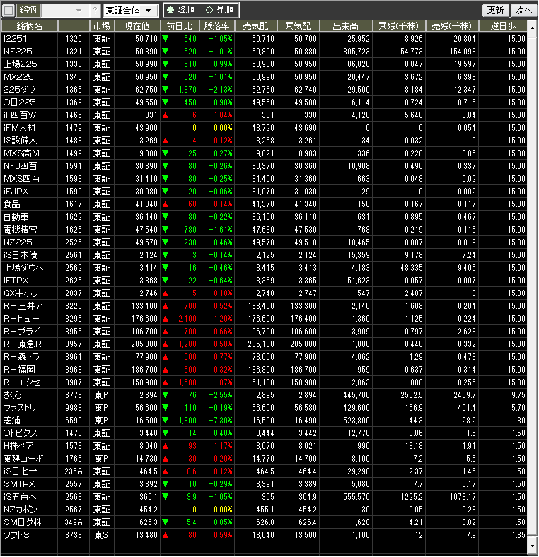 当日値上がり数/値下がり数