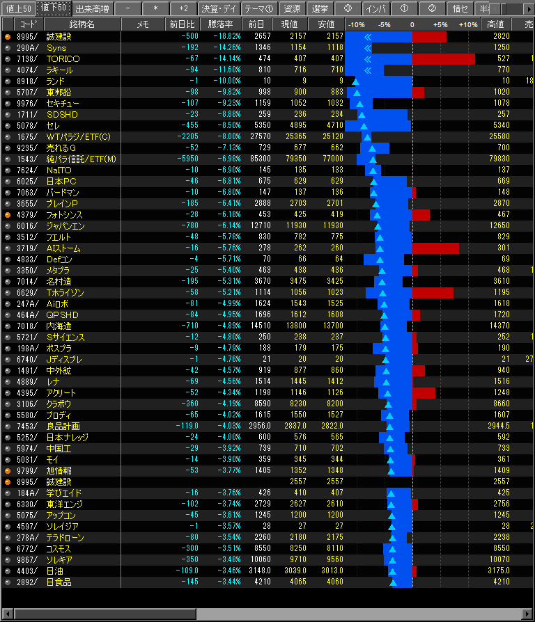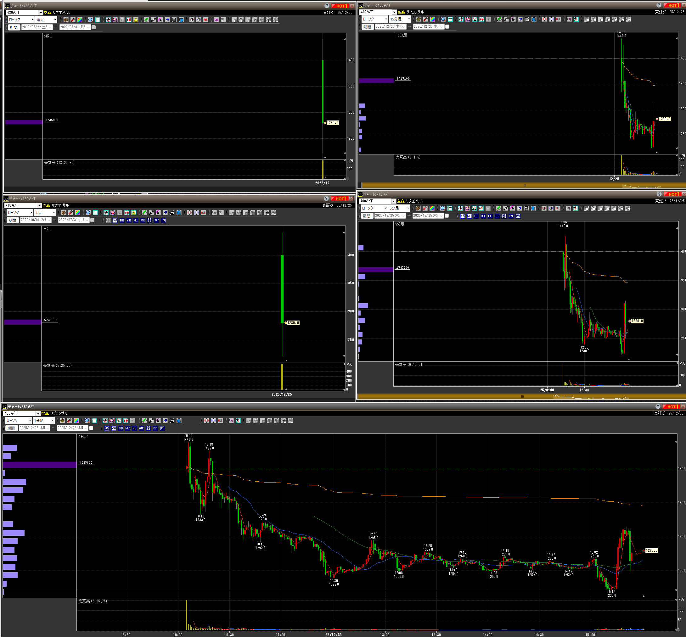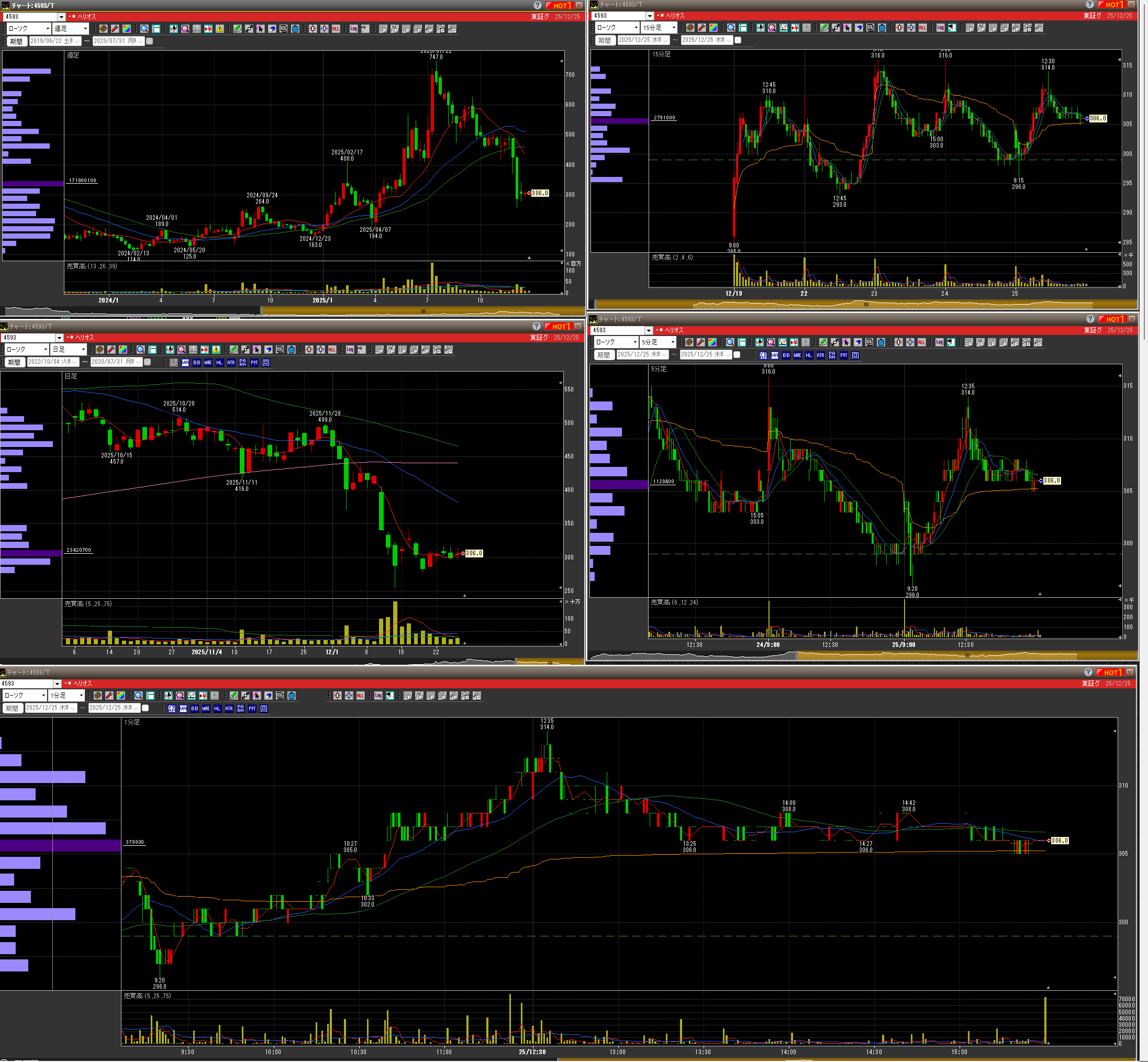 ・材料が出てptsではS高付近まで買われ、ザラ場は特買スタート➡飛び乗って全ポジ含み益でしたが失速してきたので繁益➡その後ズルズル下げ続ける展開に