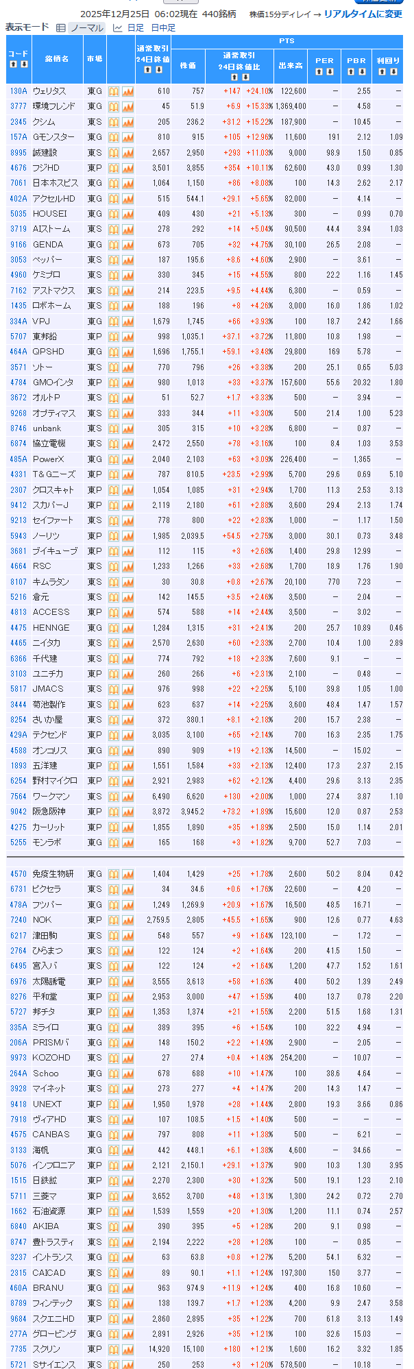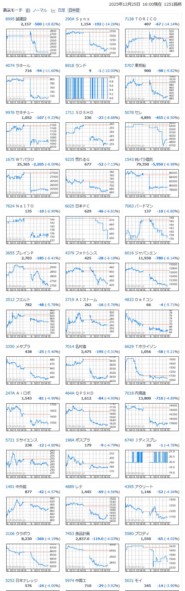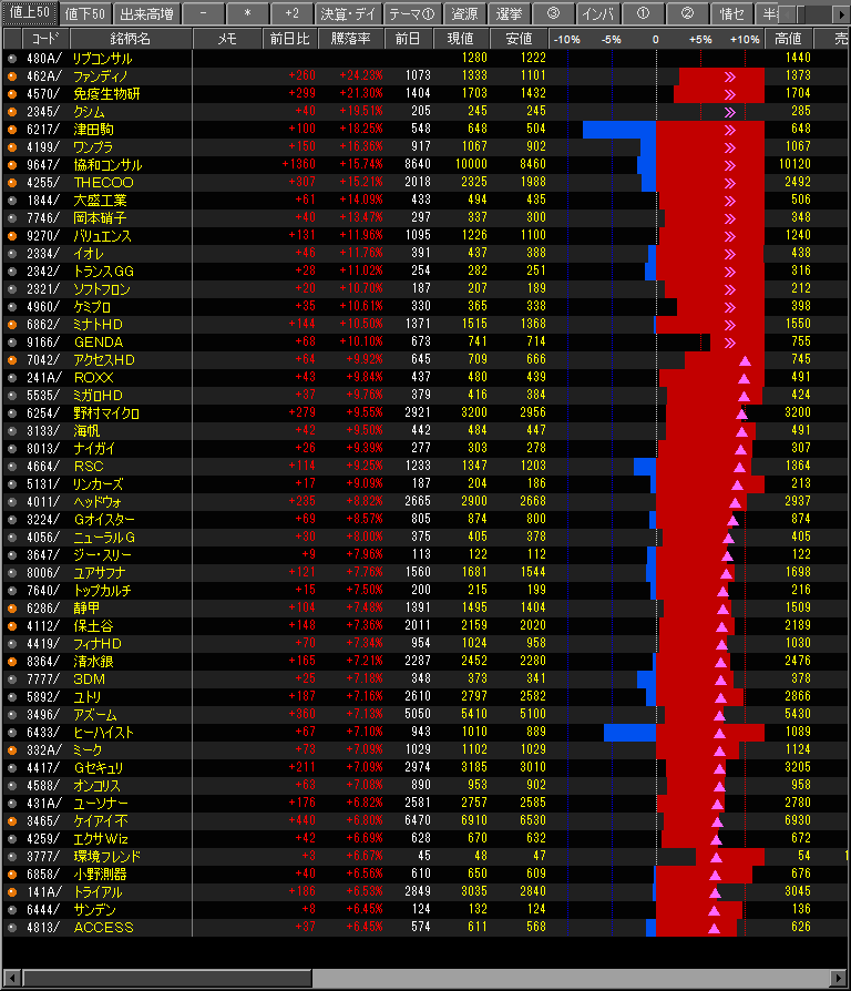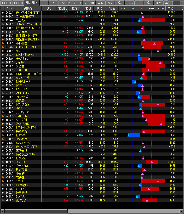 ・材料が出てptsではS高付近まで買われ、ザラ場は特買スタート➡飛び乗って全ポジ含み益でしたが失速してきたので繁益➡その後ズルズル下げ続ける展開に