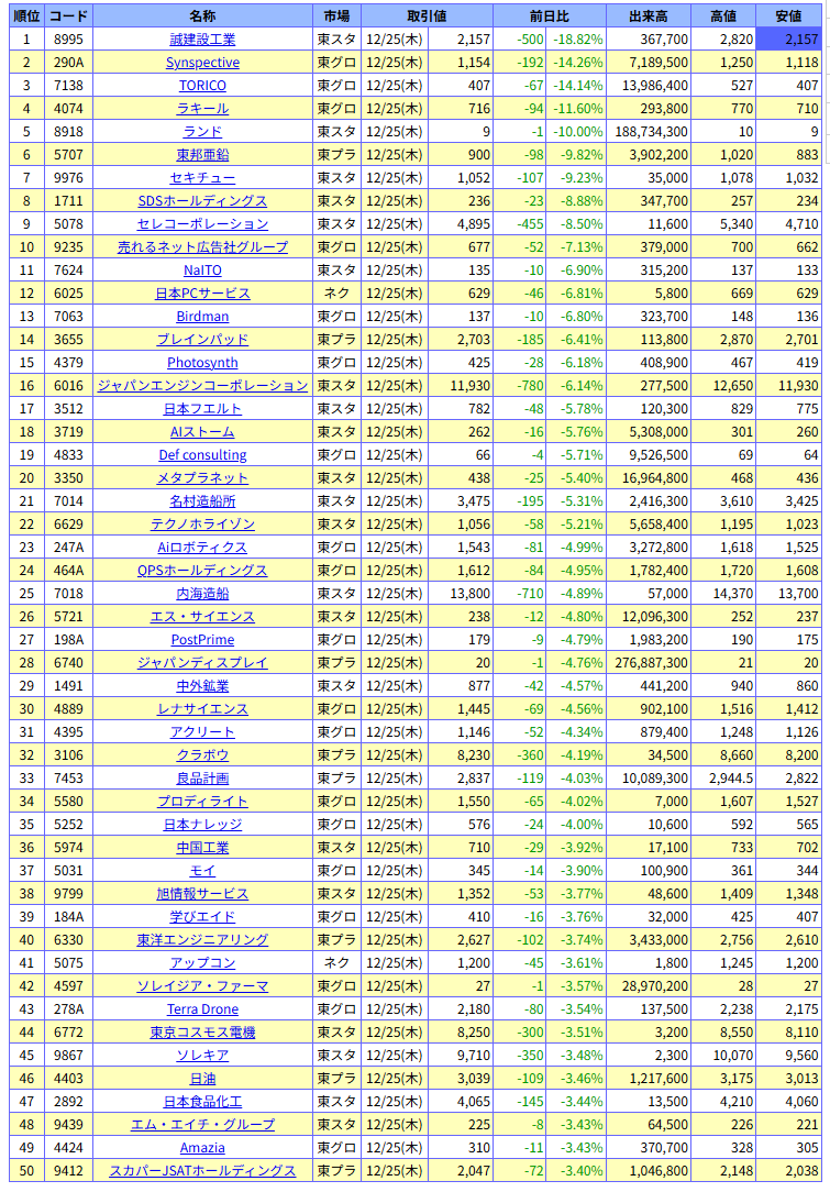 ・寄り付きは上昇するも、失速してからほぼリバすることもなくストップ安に