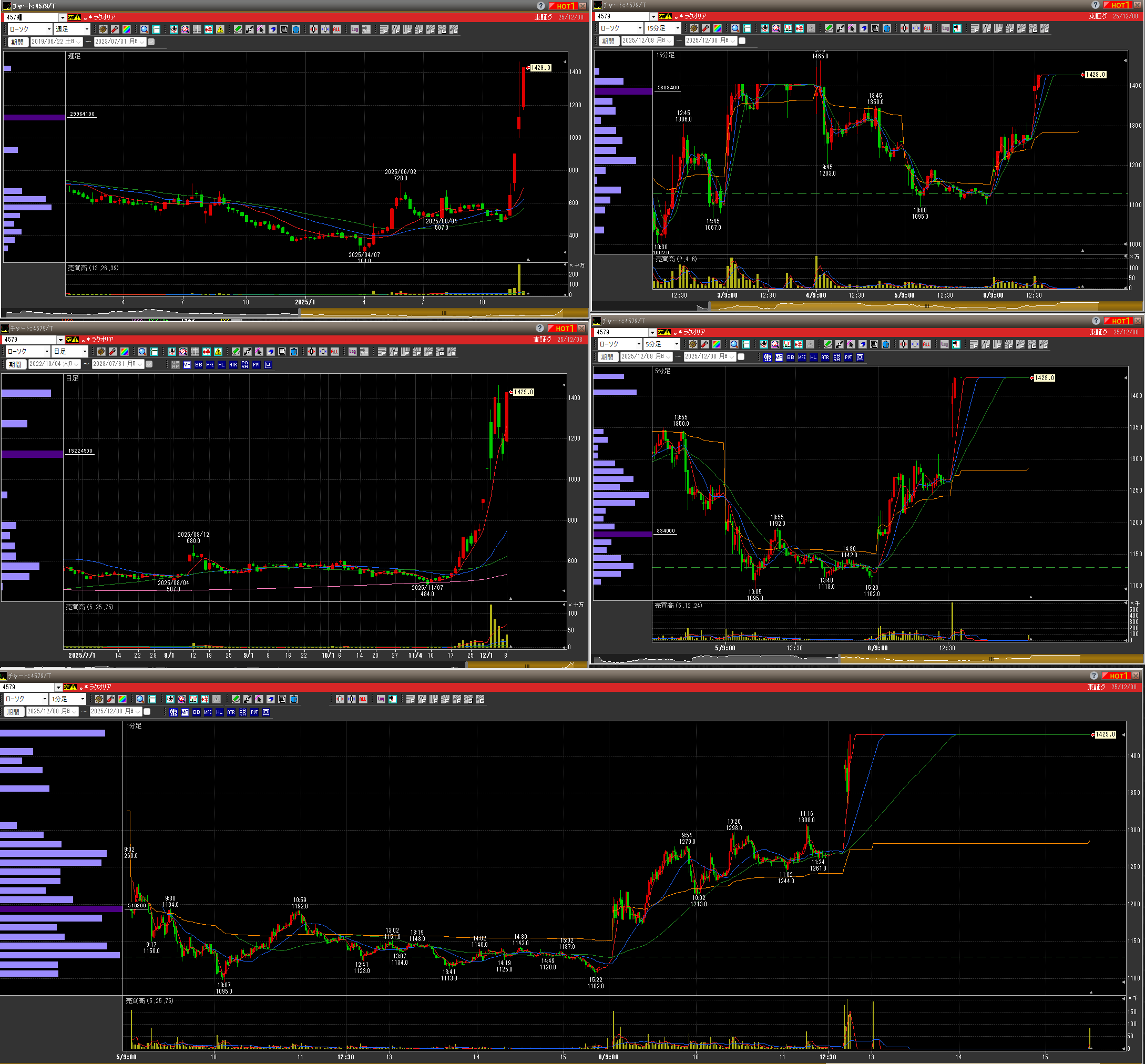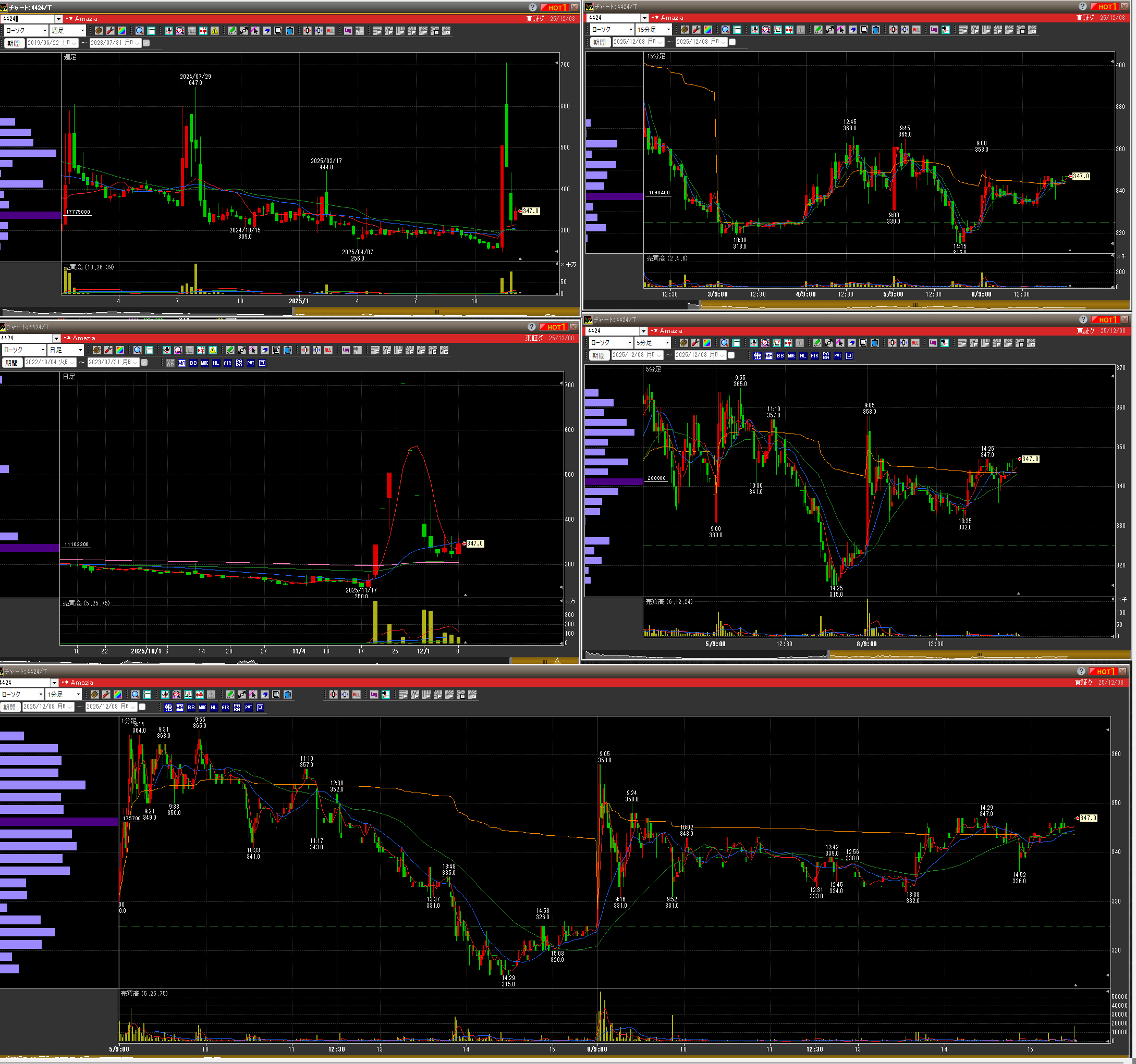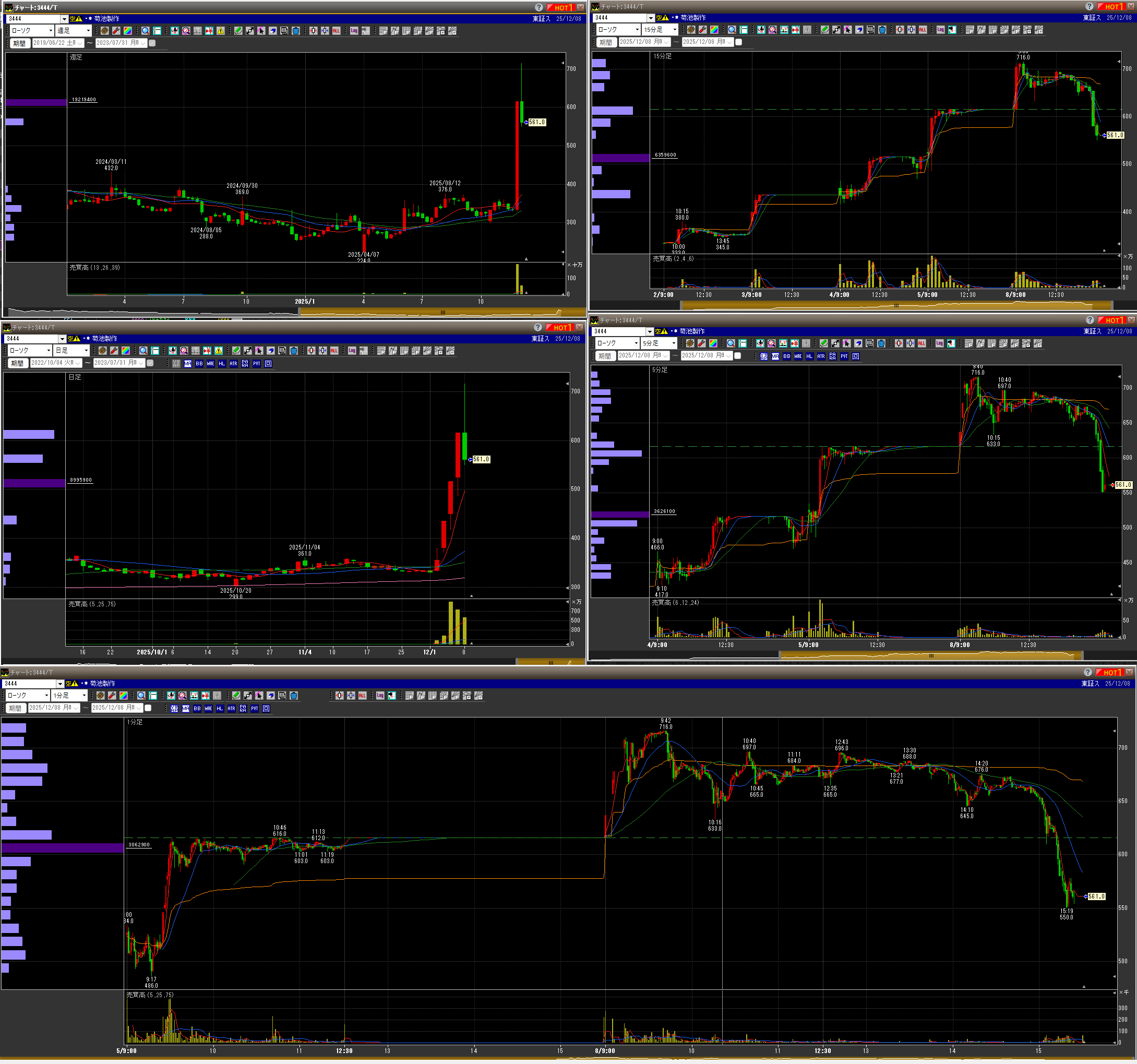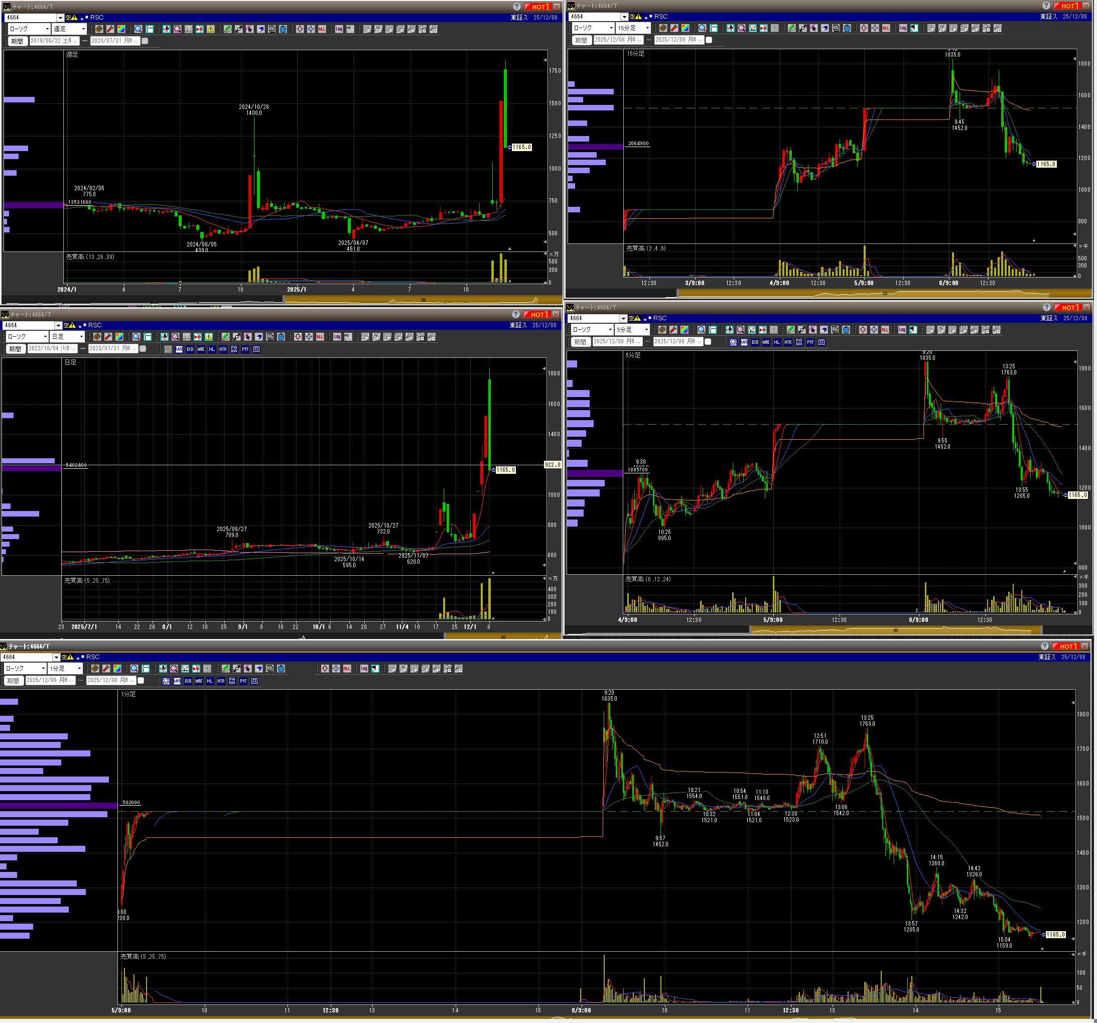 ・ナンピンしたり引き付けて損切したりしてましたが、売り切った後に爆上げして一時期+100円(10%)以上に➡最終的に前日終値付近まで急落して引け