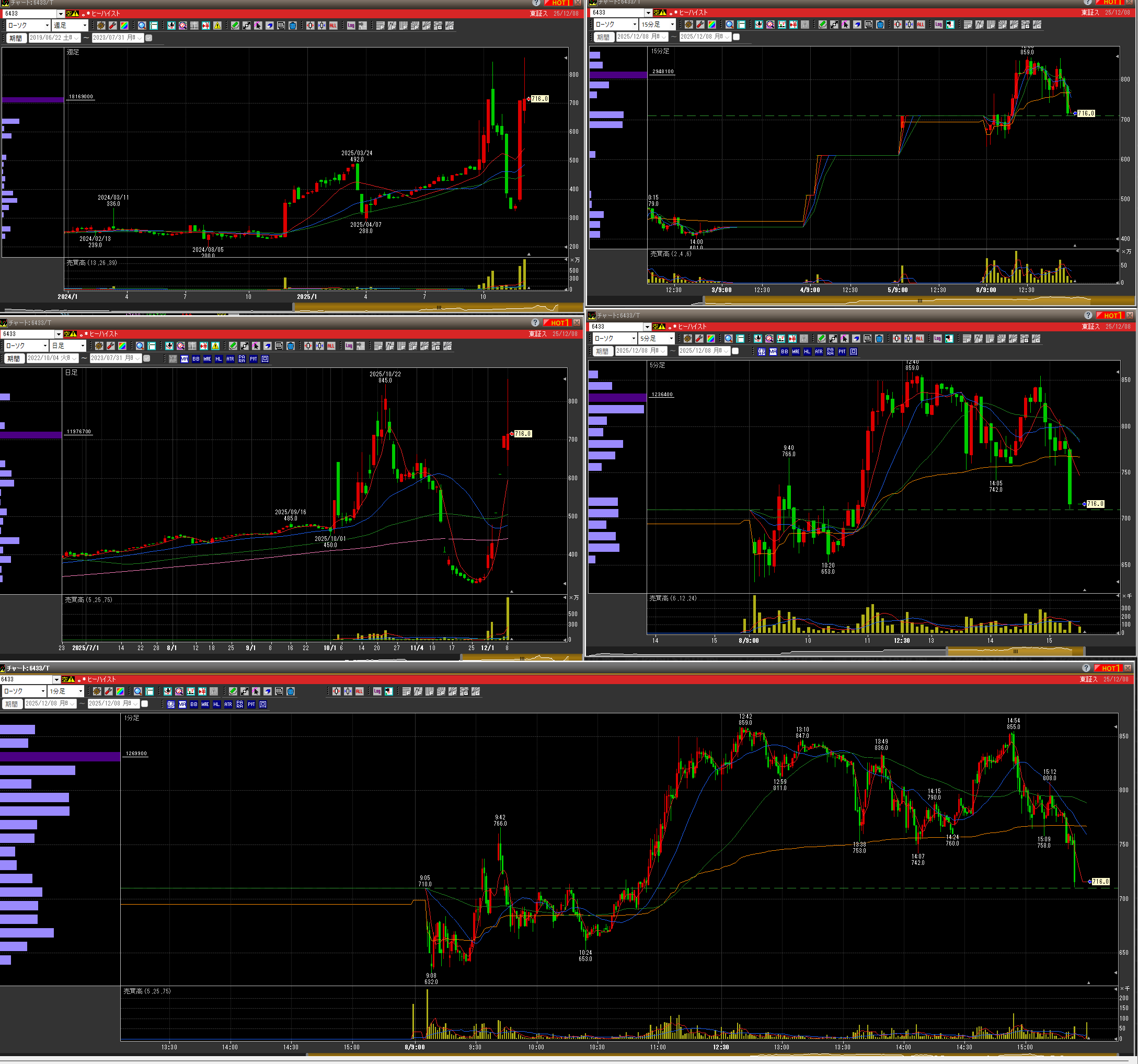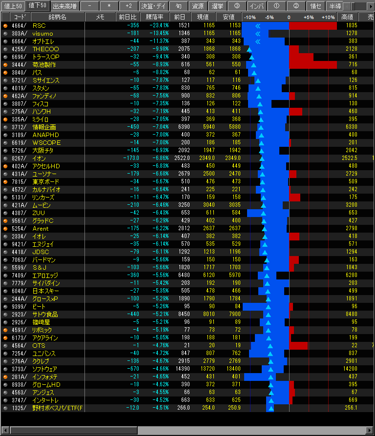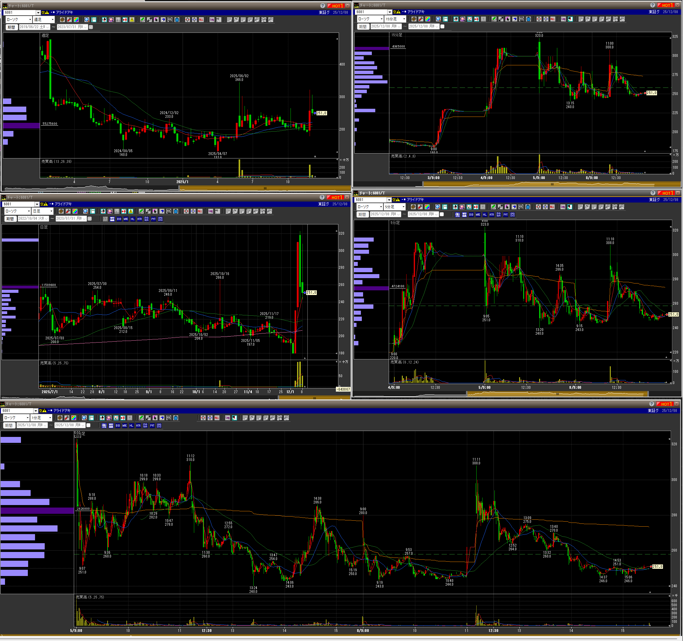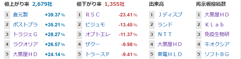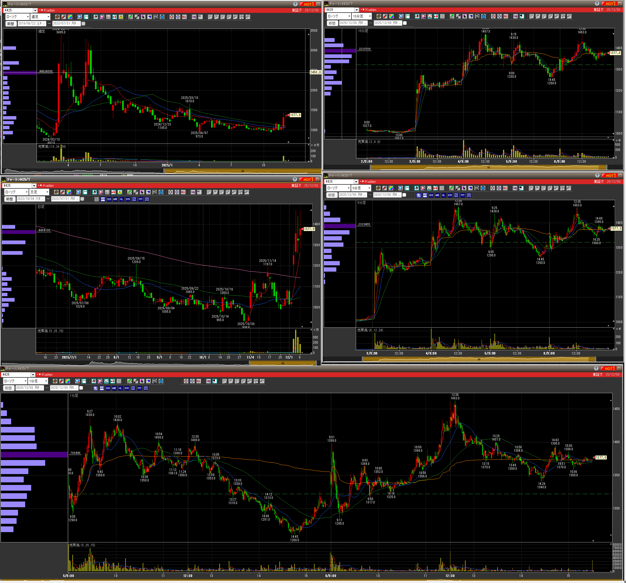 ・ナンピンしたり引き付けて損切したりしてましたが、売り切った後に爆上げして一時期+100円(10%)以上に➡最終的に前日終値付近まで急落して引け