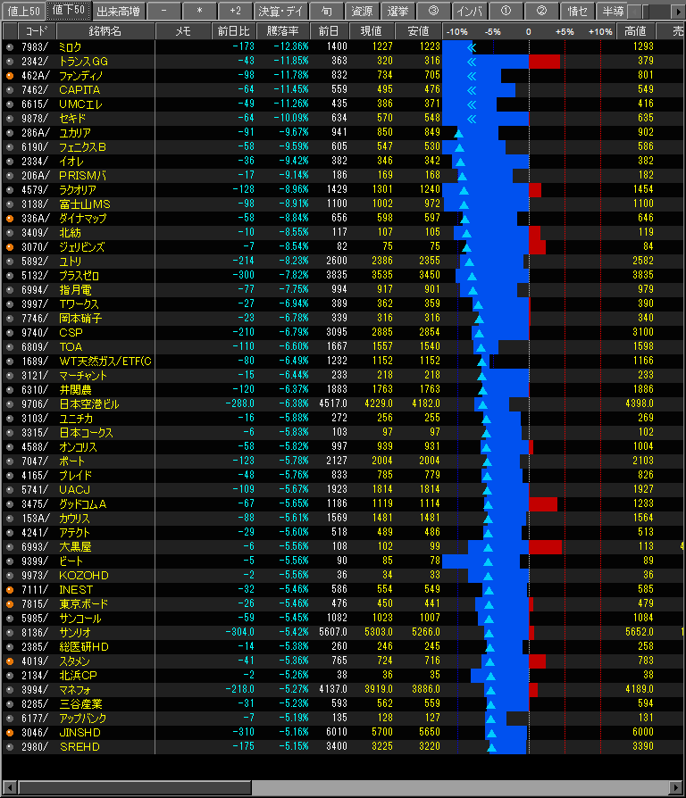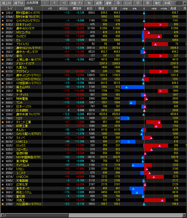・チャート的に大きく跳ねそうやったので寄り付きから買い注文➡ささらず追いかけていくも買ったら下がる➡注視してたら上がってきたので追撃➡すぐにおりました