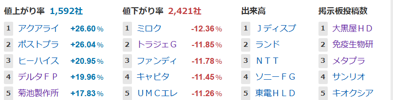 ・昨日と同様跳ねるのを期待してましたが、まだまだ他に資金がいってる模様