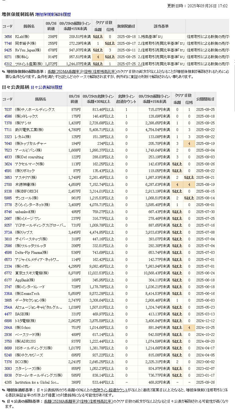 増し担保解除ライン&日々公表