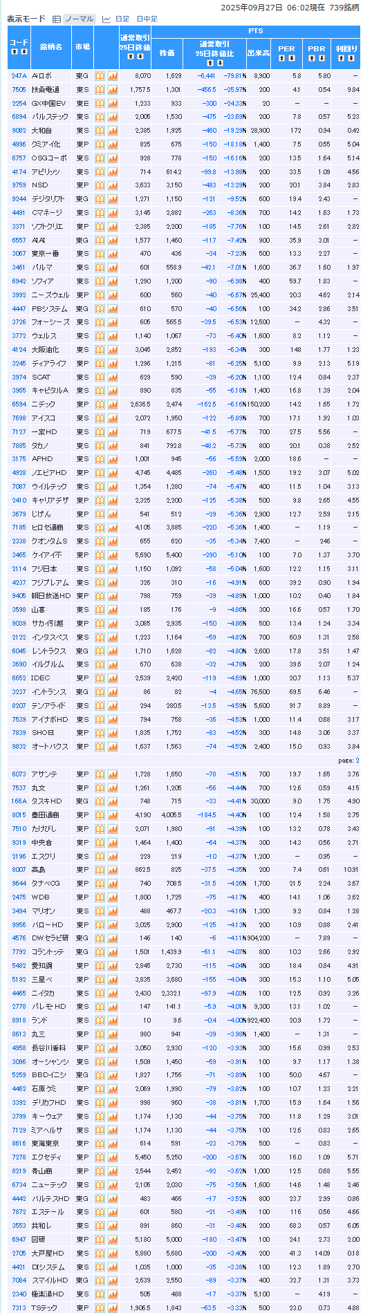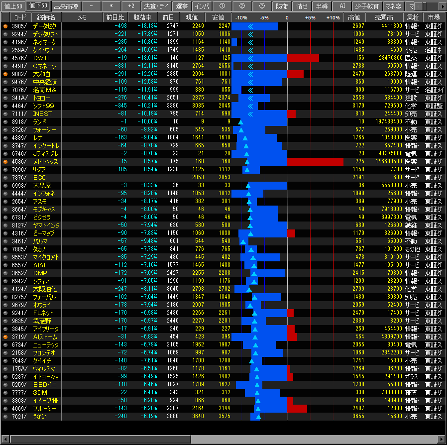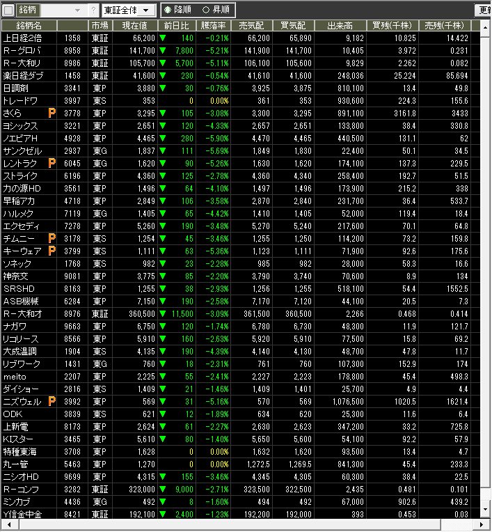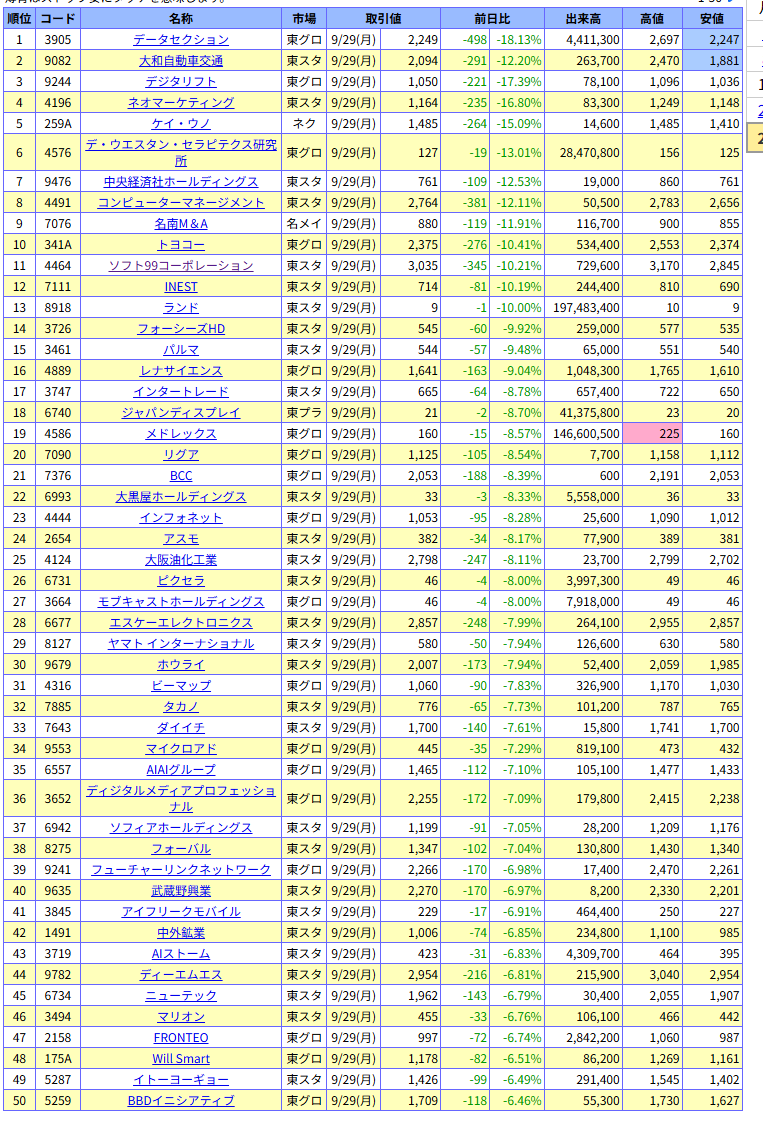 値下がり率ランキング