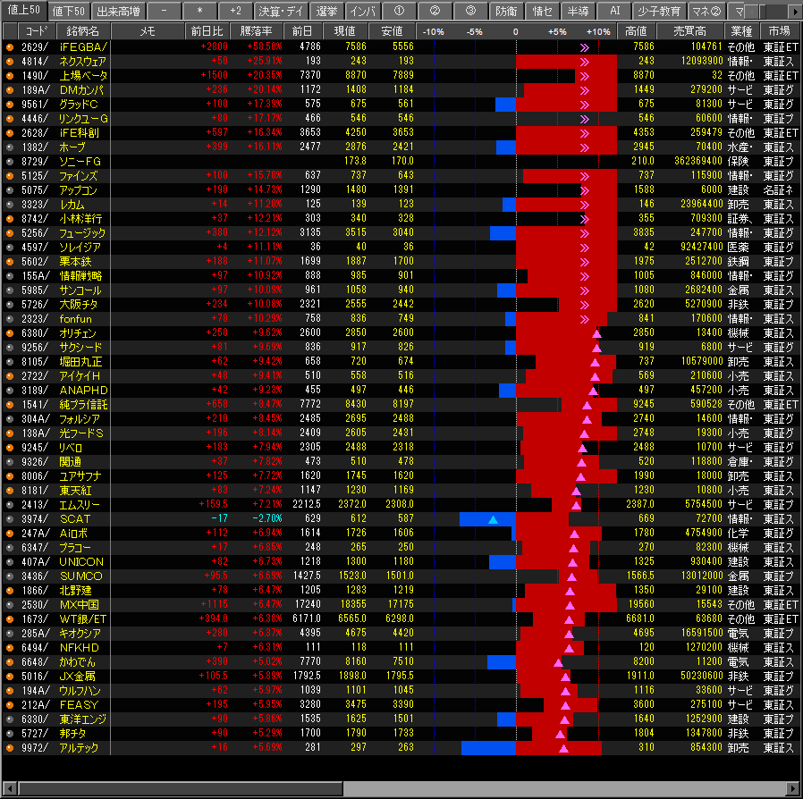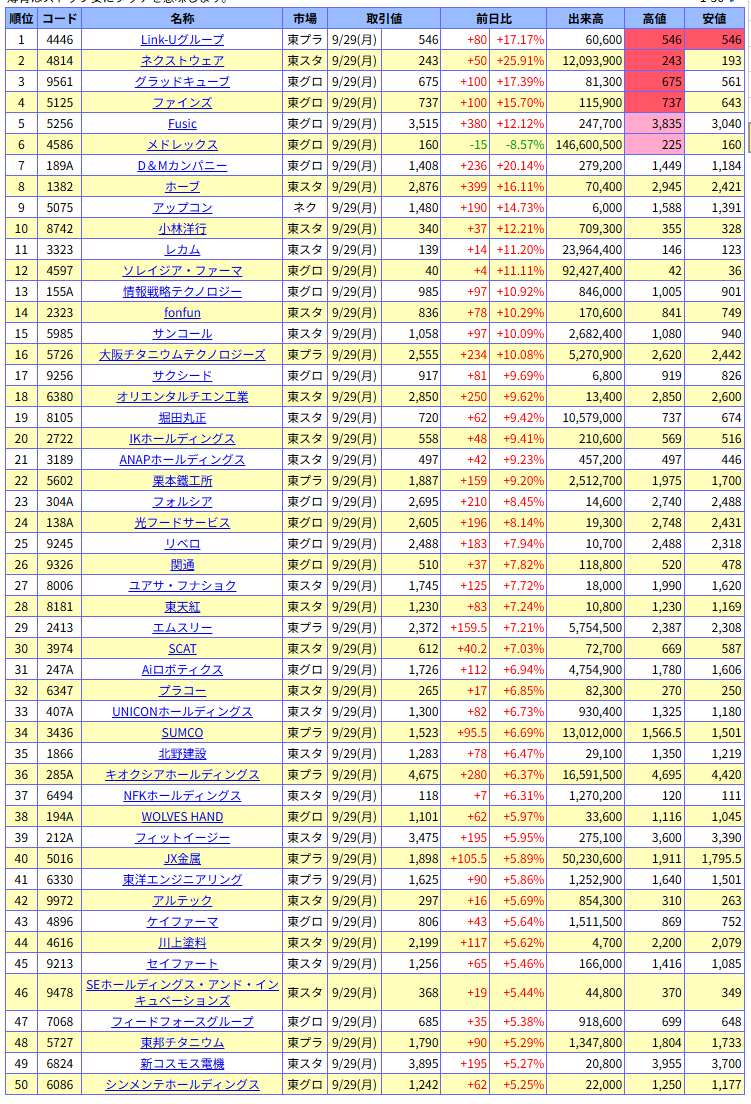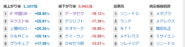 値上がり率ランキング