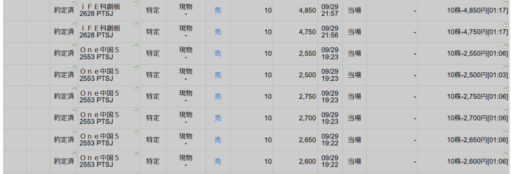 ・パニック売りの時にもう少し指して、天井で売れていれば爆益でした