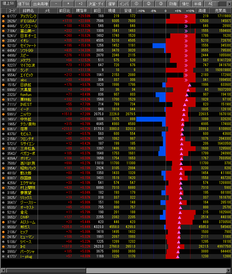 ・寄り開始➡当別気配➡ストップ高まで行くと思いきや、特売りに➡ptsにて残り10株りかく➡ptsにて6161で10株買い&信用買いセット➡昨日終値までは余裕と思ってましたが、下に張り付いた時のことを想像すると怖くて600ほど上でリリース➡結局、12000まで戻したり乱高下