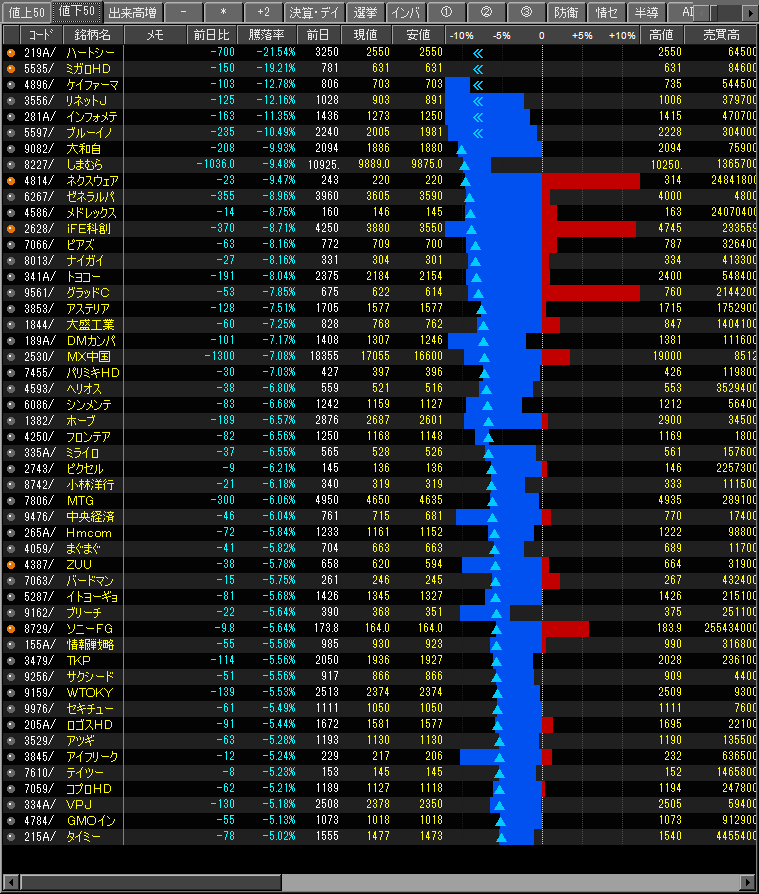 ・急落した時に(寄り付きにセットしていた指値)2280で20株買い戻し、その後雰囲気が良くなかったので指値取消し➡一時S安へ