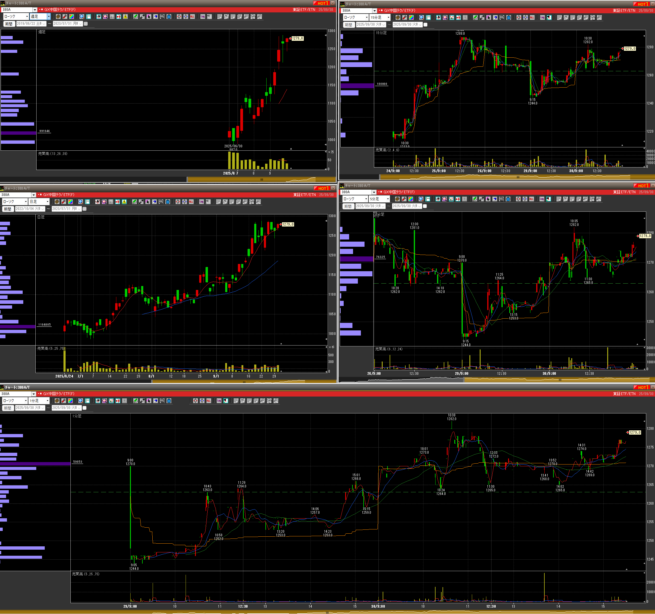 ・まだ本格的にETF相場が始まってないと思い出し渋りしたんですけど、ここは全部売ってザラバに買い戻すべきでした