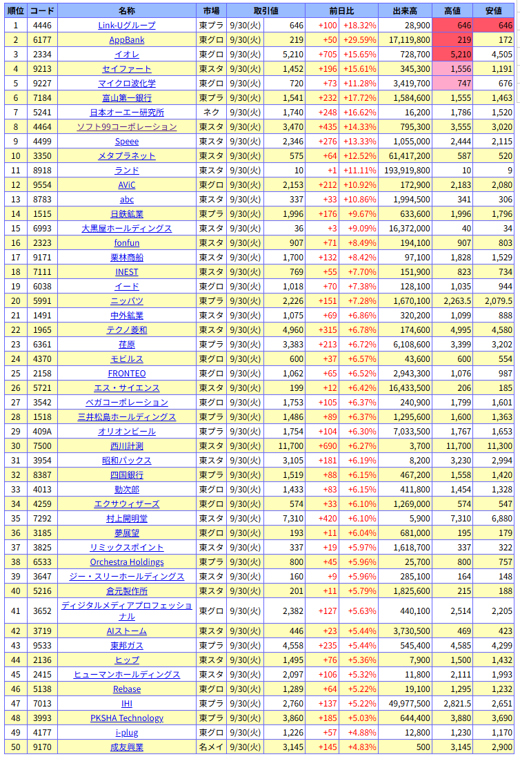 アンドエスティ、象印、キユソー流通、スターマイカHD、オークワ、ERIHD、日プロセス、ピックルスHD、YEDIGIT、ヤマシタヘルケア、インテG、テクノアルファ