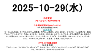 未分類 2025-10-29(水) 市場スケジュール海外パウエルFRB議長会見《米決算発表》アルファベット、マイクロソフト、ボーイング、キャタピラー、ベライゾン・コミュニケーションズ、TEコネクティビティ、ファイサーブ、オートマティックデータ国内日銀金融政策決定会合(~10/... 2025.10.29 未分類