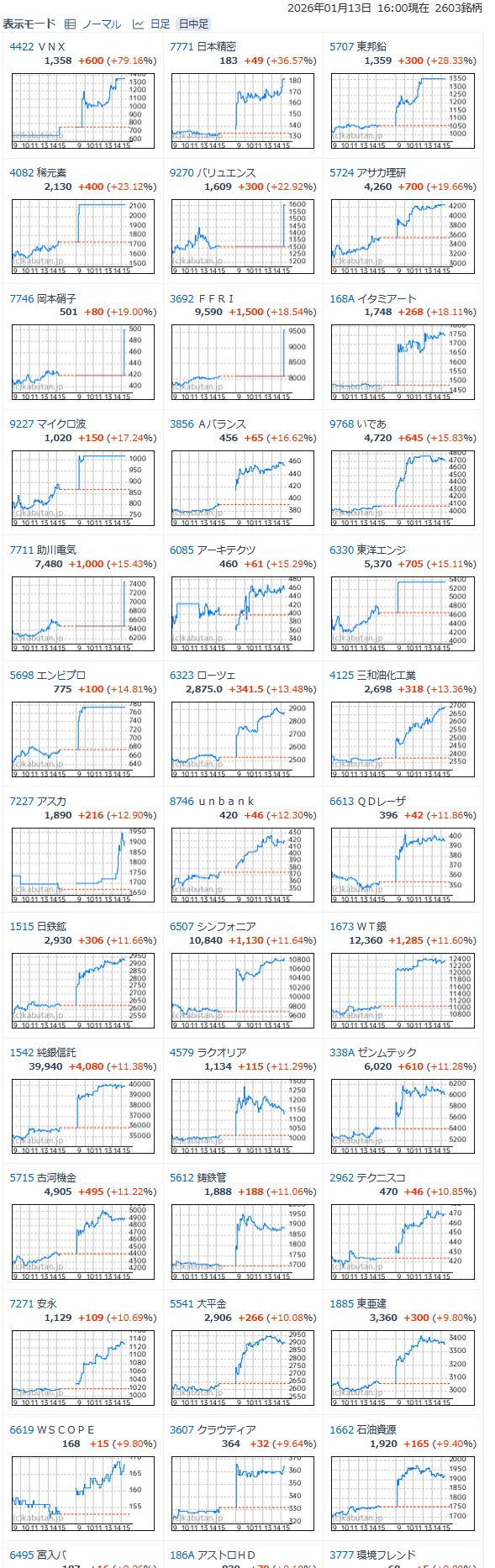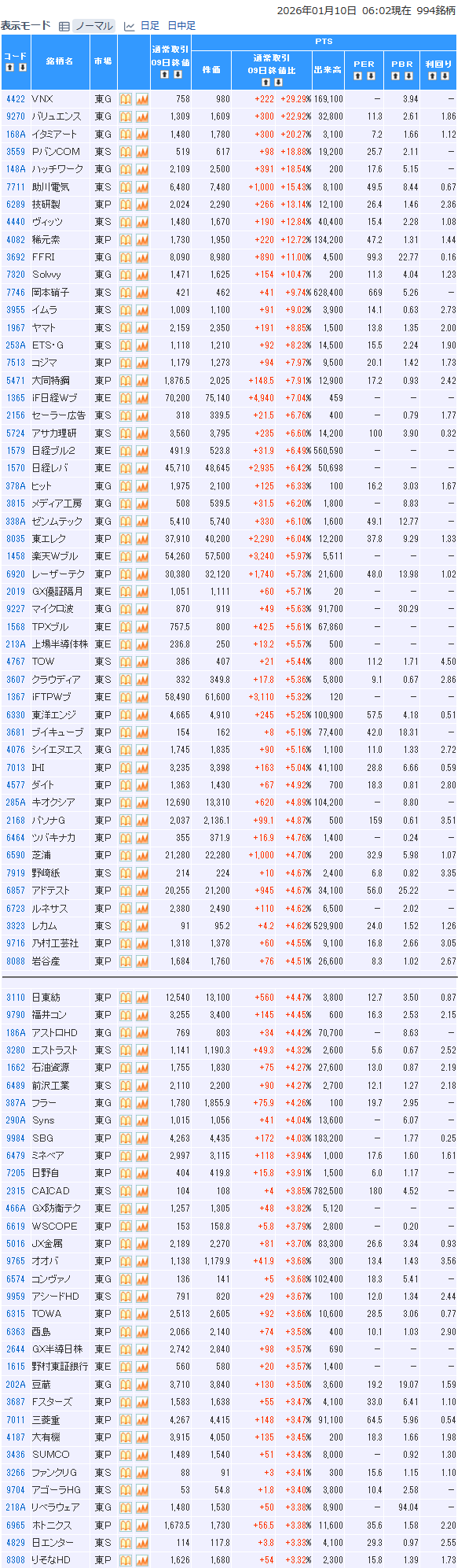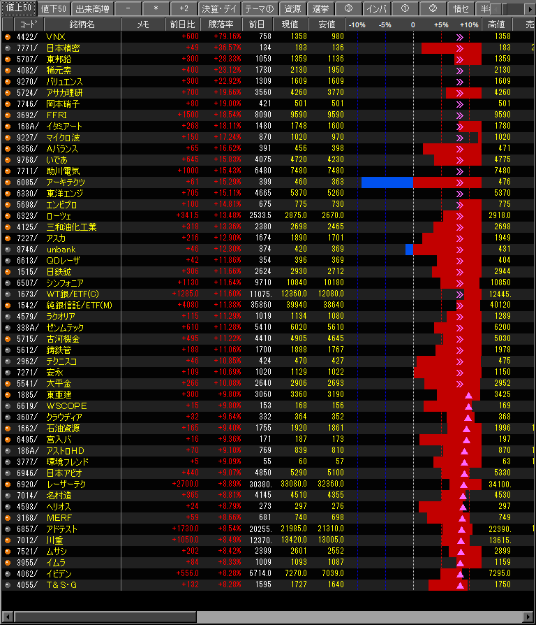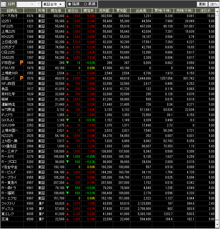 値上がり率ランキング