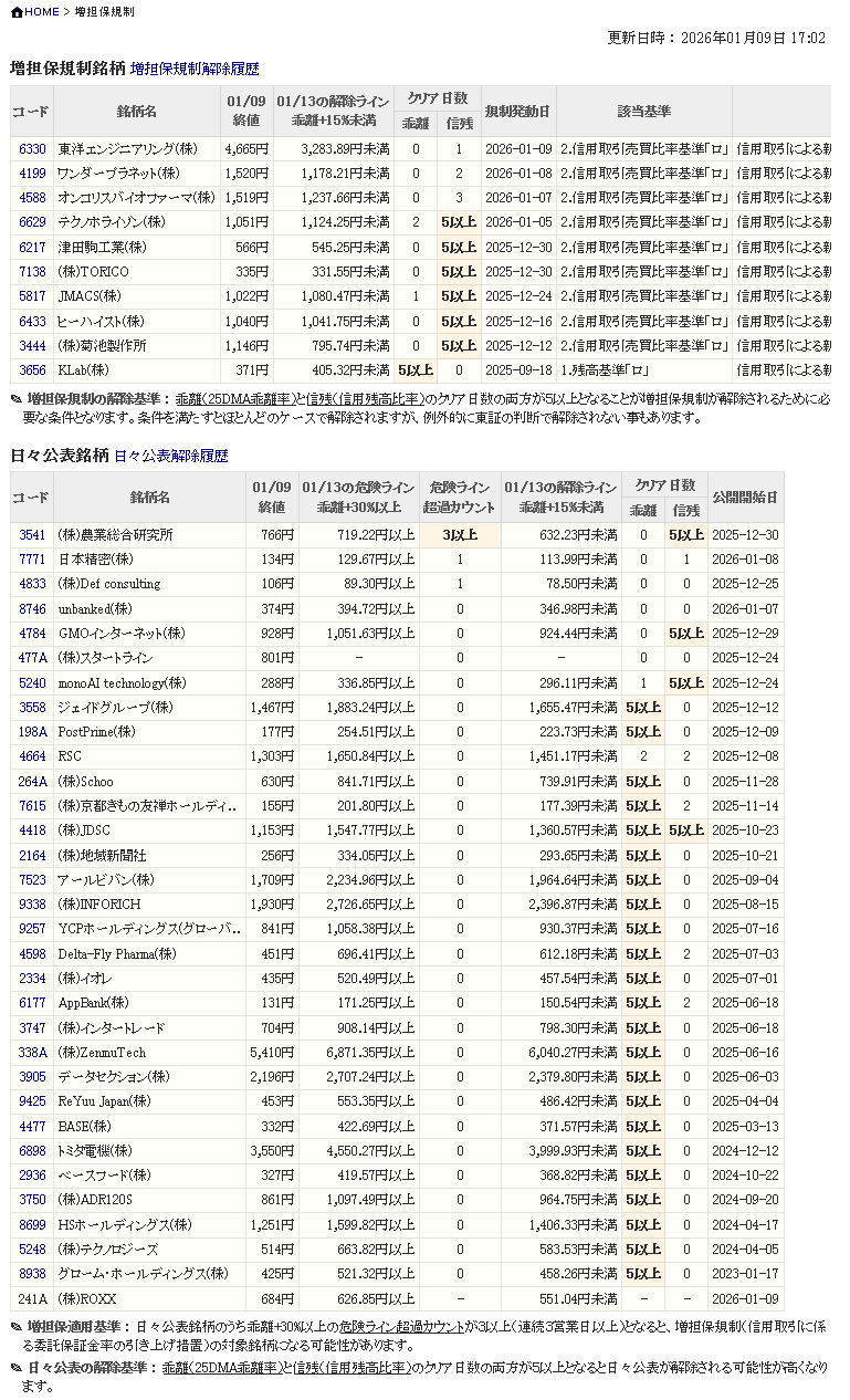増し担保解除ライン&日々公表