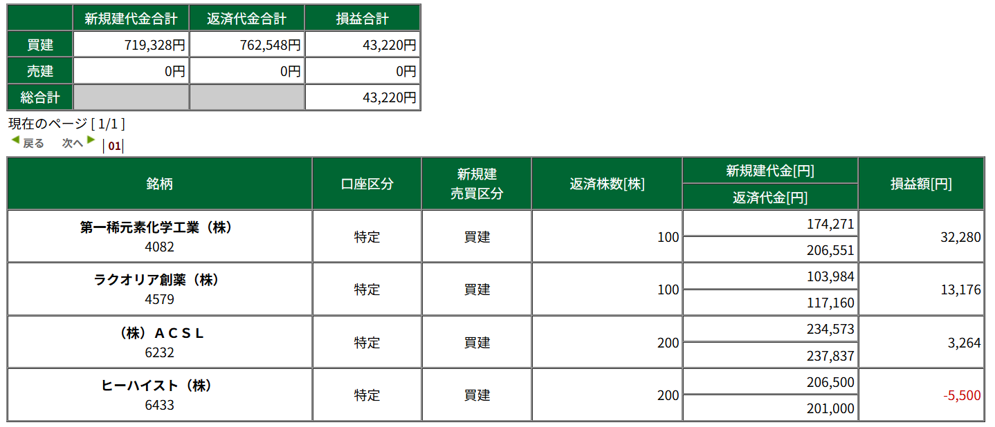・全体的に弱かったので買い戻しはしてません