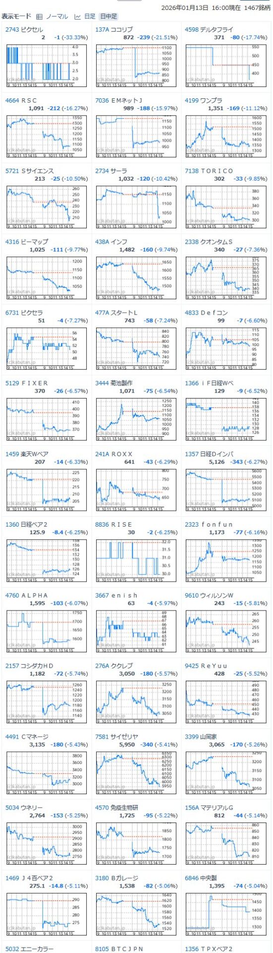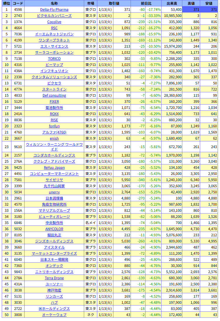 値下がり率ランキング