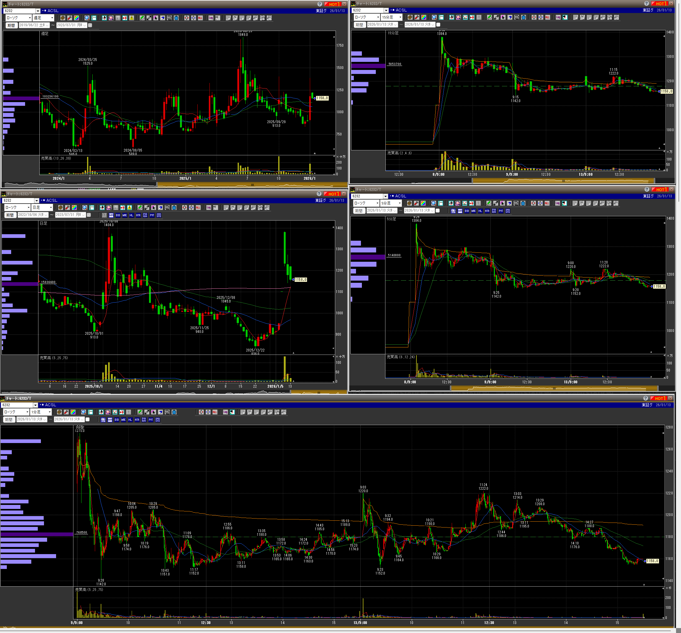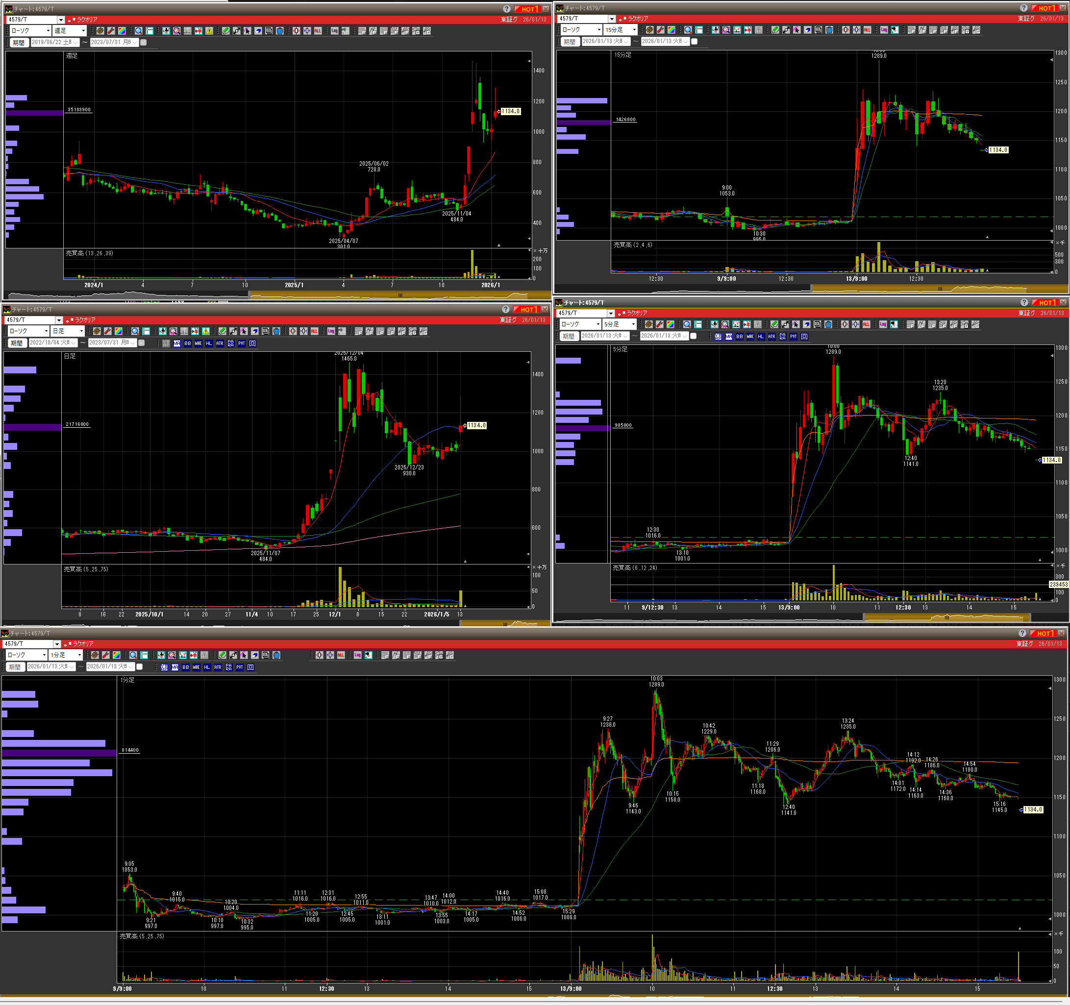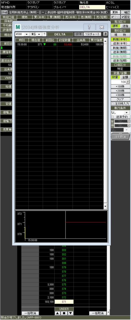 ・ストップ高期待で1300以上で指値するも届かずにイッテコイ