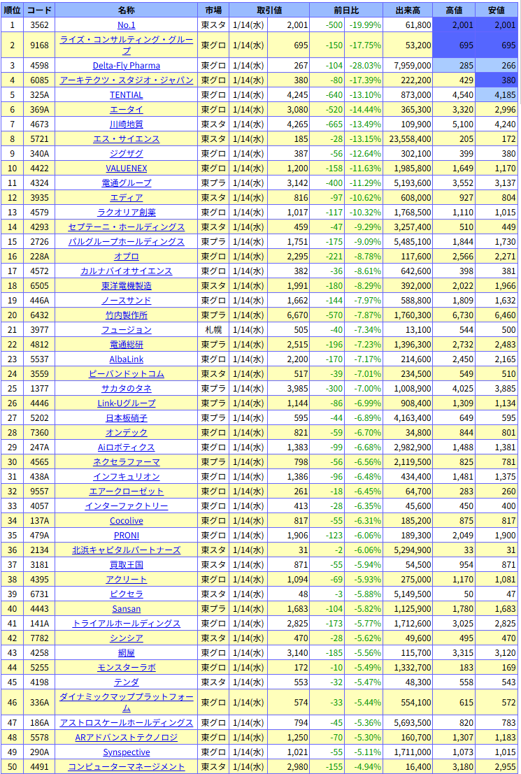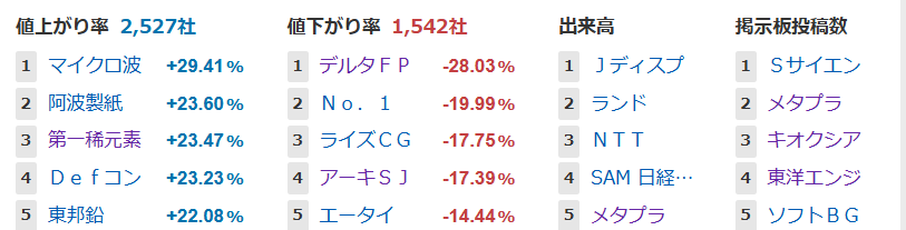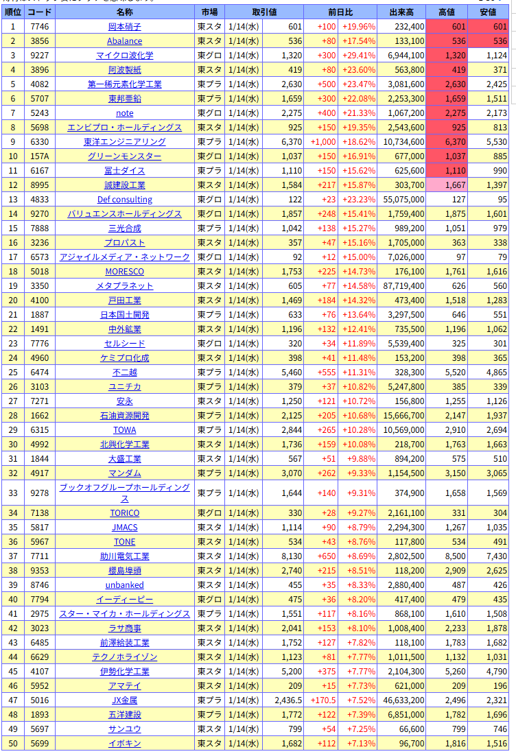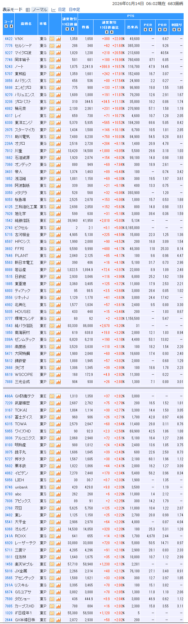 良品計画、東宝、ベイカレント、キユーピー、U-NEXT、クリレスHD、ビックカメラ、サイゼリヤ、SHIFT、マネフォワード、Sansan、いちご、トーセイ、松竹、マニー、コメダ、ウイングアーク、ドトル日レス、不二越、ベル24HD、SFoods、大黒天、グロービンク、パソナG、QPSHD、TSIHD、TKP、ボードルア、ウエストHD、トランザクショ、リテールPT、ベクトル、AIT、FPパートナー、アイドマHD、日本国土、SFP、モリト、ダイト、スタジオアリス、ラクトJPN
