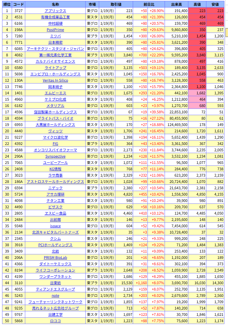 ・ヒーハイストが増し担解除、ここも先週金曜日で日々公表から外れ➡明日から循環物色が来るかもと追加
