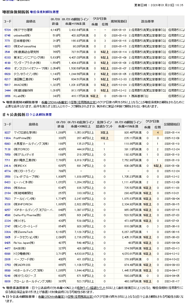 増し担保解除ライン&日々公表