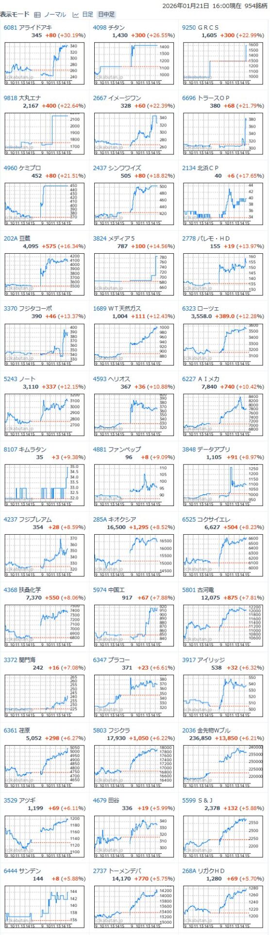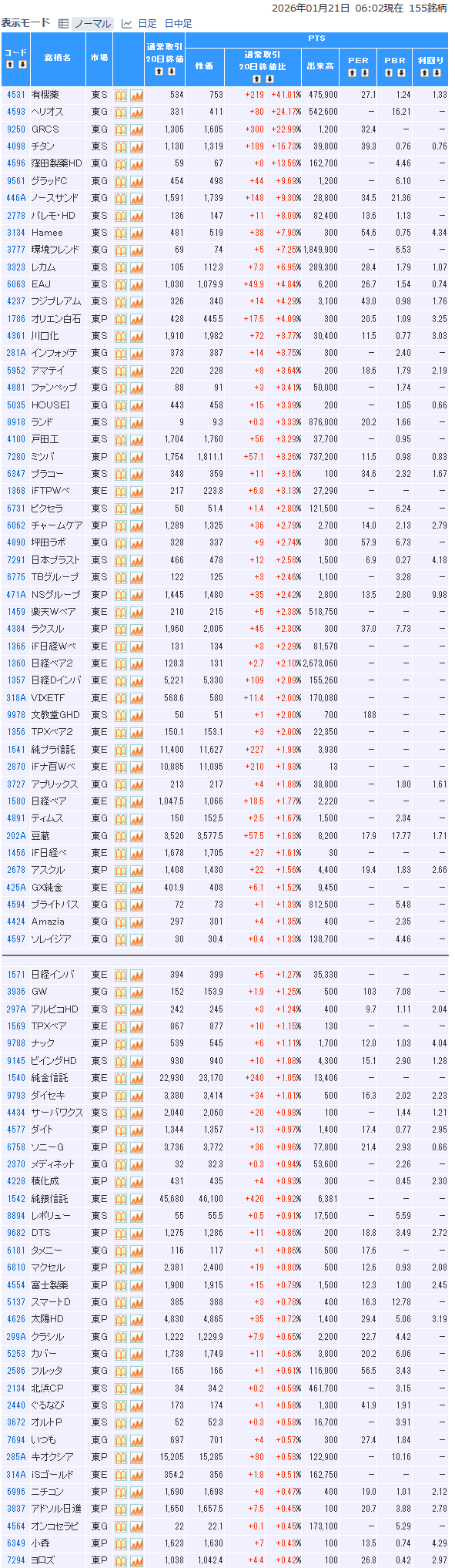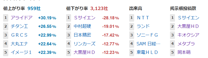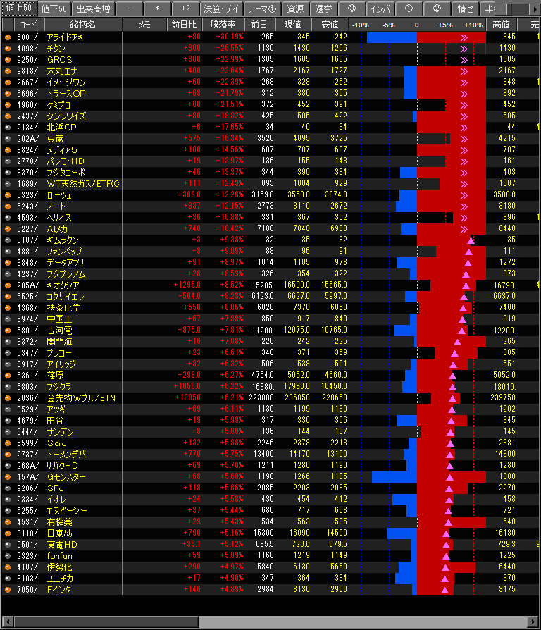 値上がり率ランキング