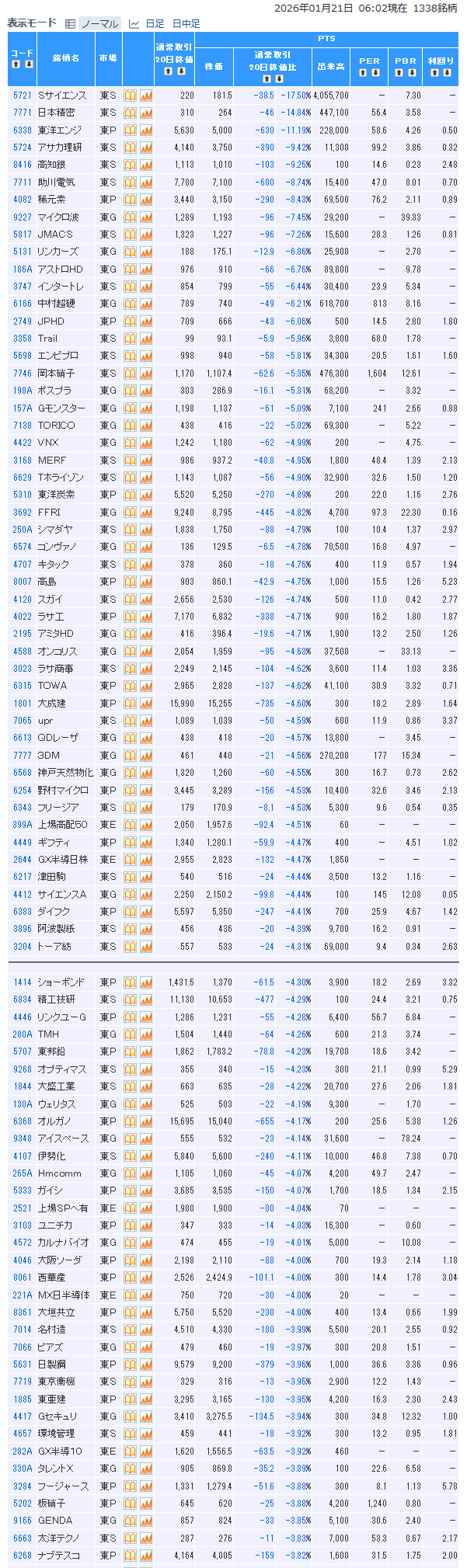・ポストプライム、日本精密撃沈&センチメントが悪いから、昨日のように資金が集まるかと思いきや思惑外れ