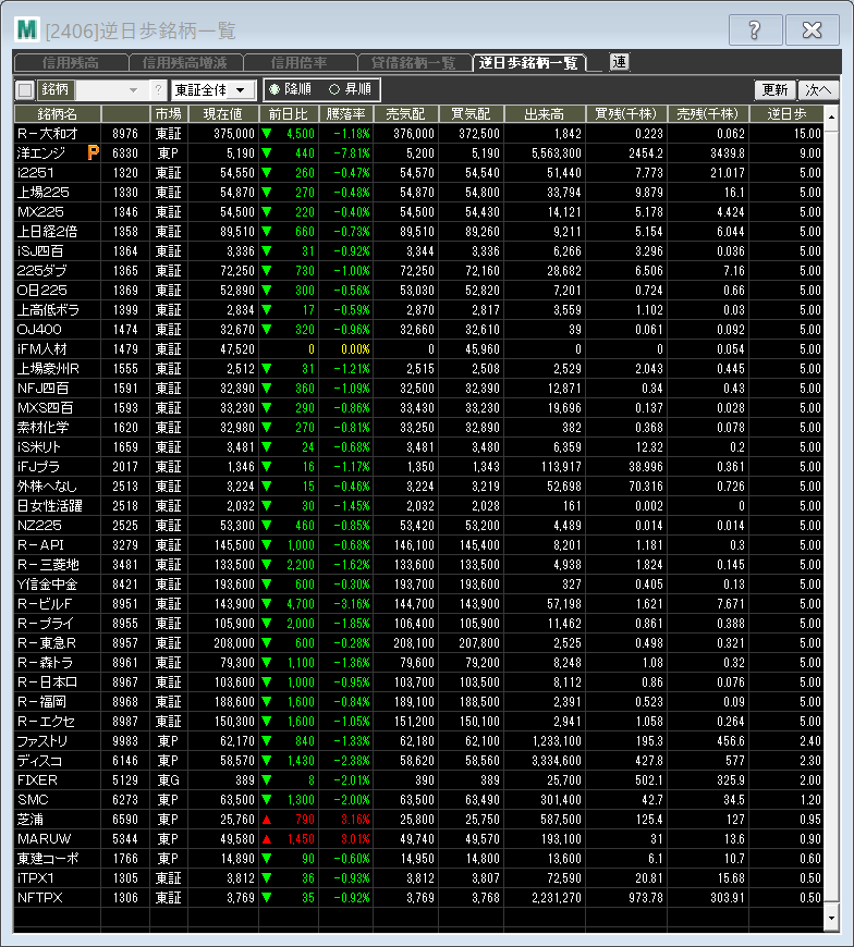逆日歩ランキング
