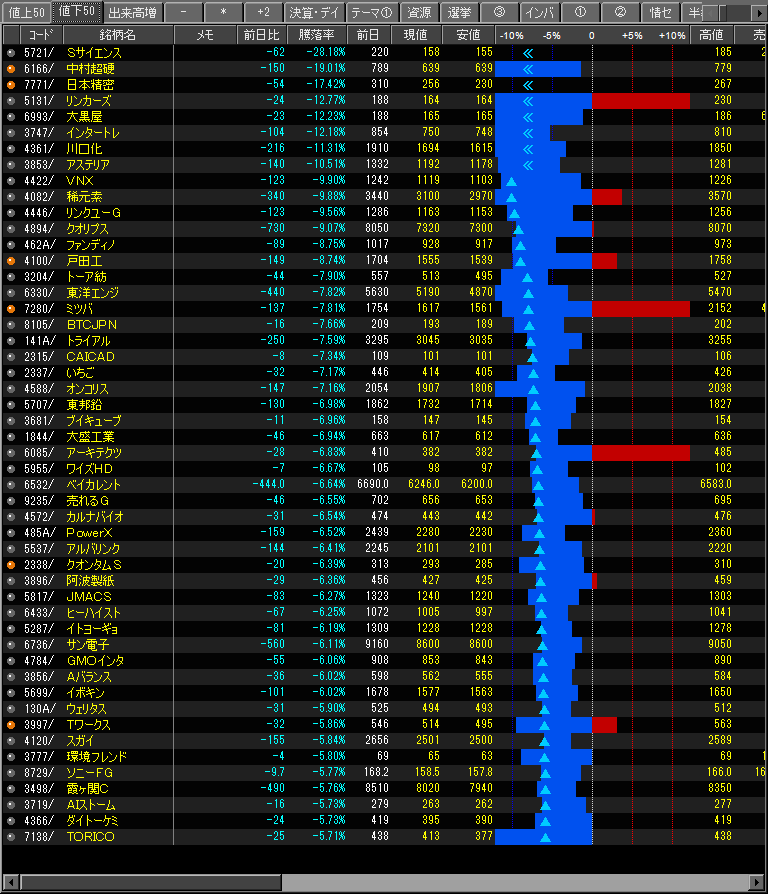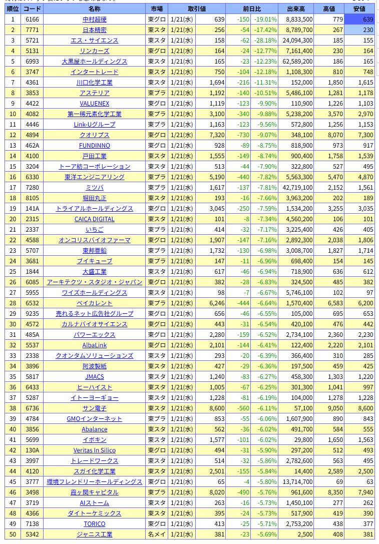 値下がり率ランキング