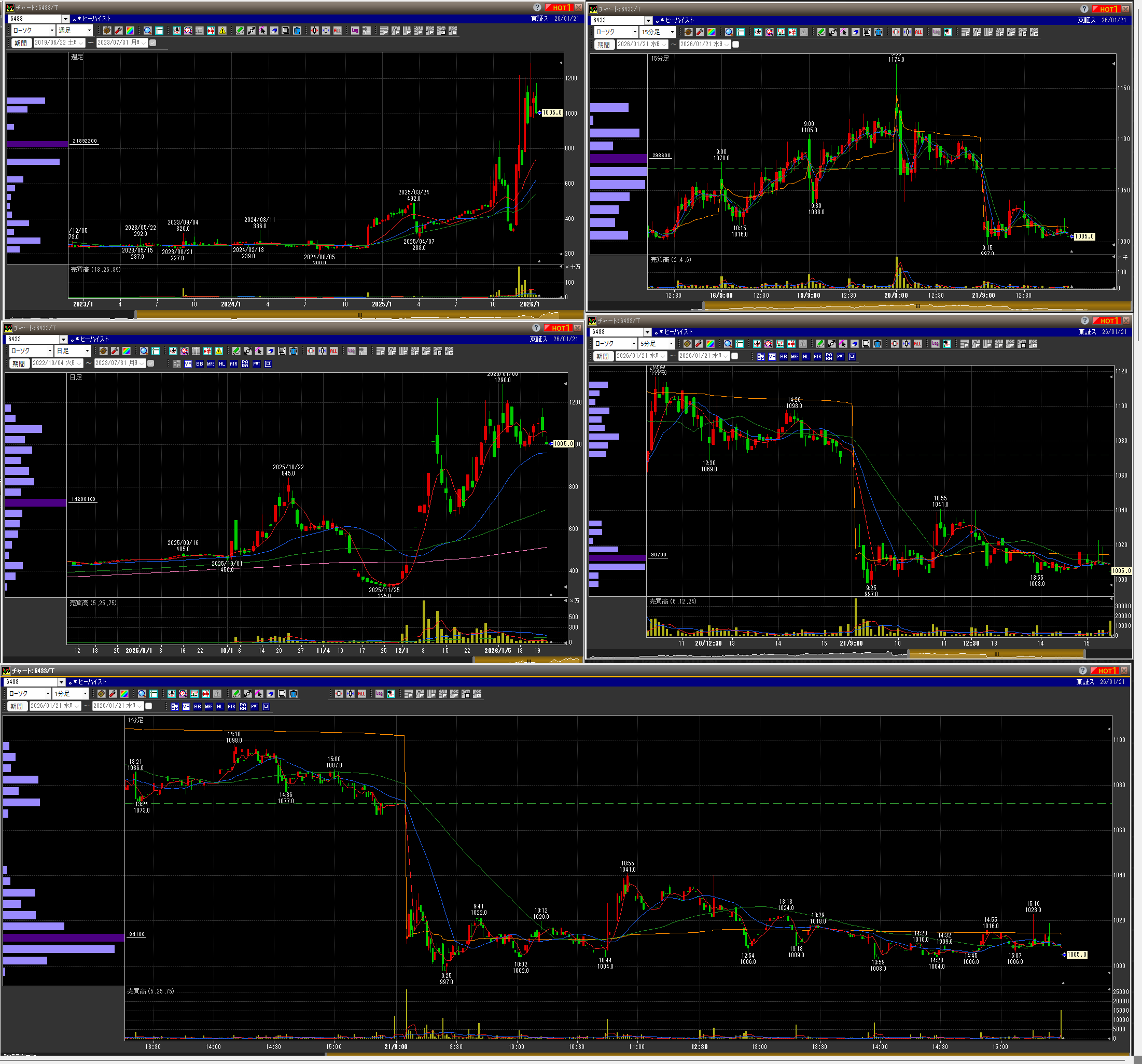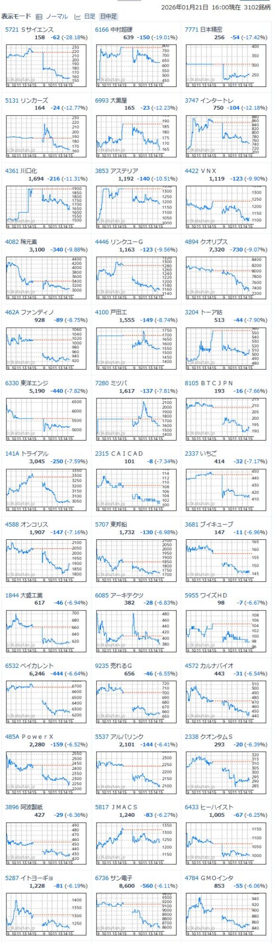 ・マネゲってる銘柄を片っ端から乗ったはいいが全てタイミングが最悪(5日線割り込んで下落の一発目ばかり)