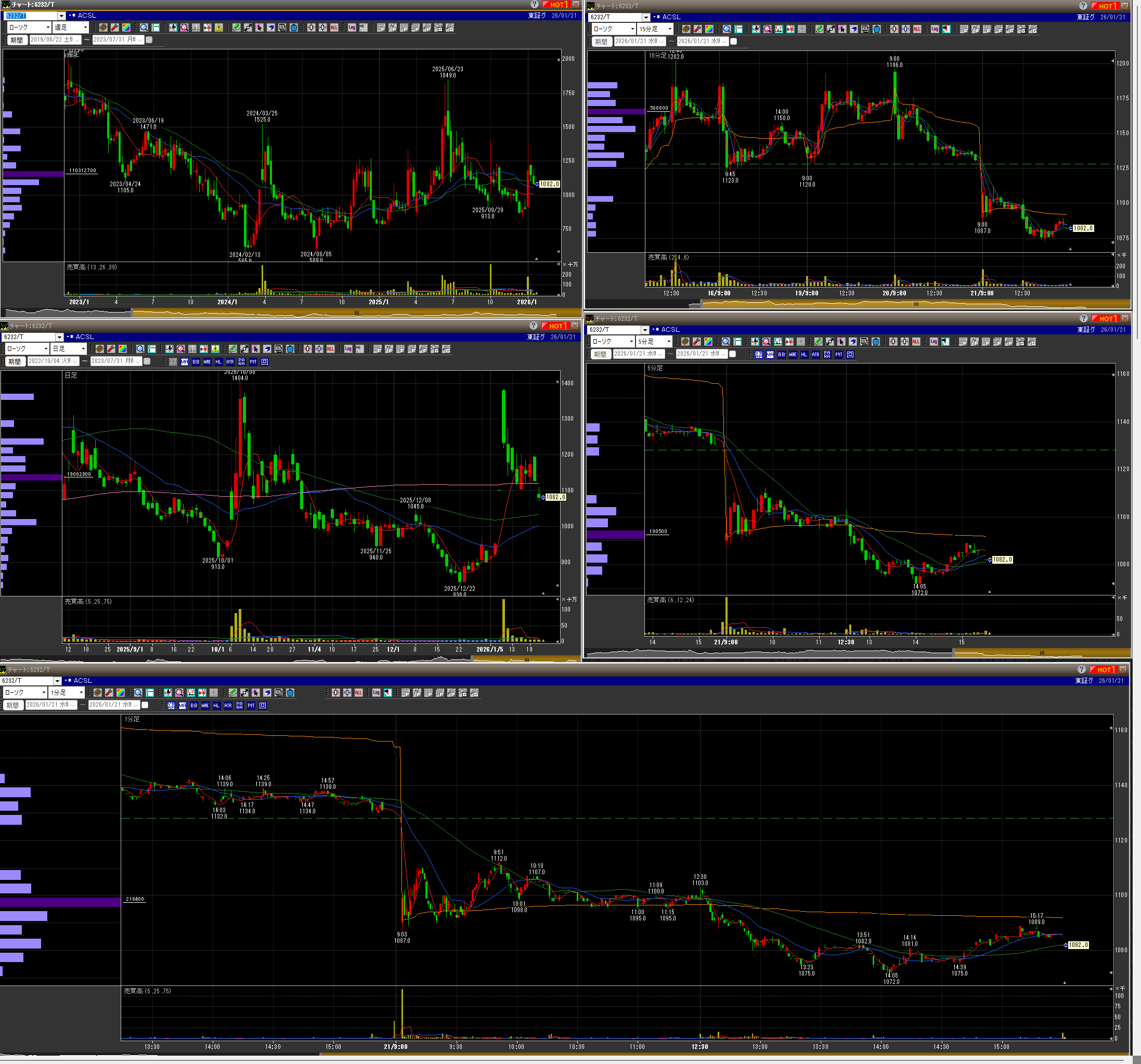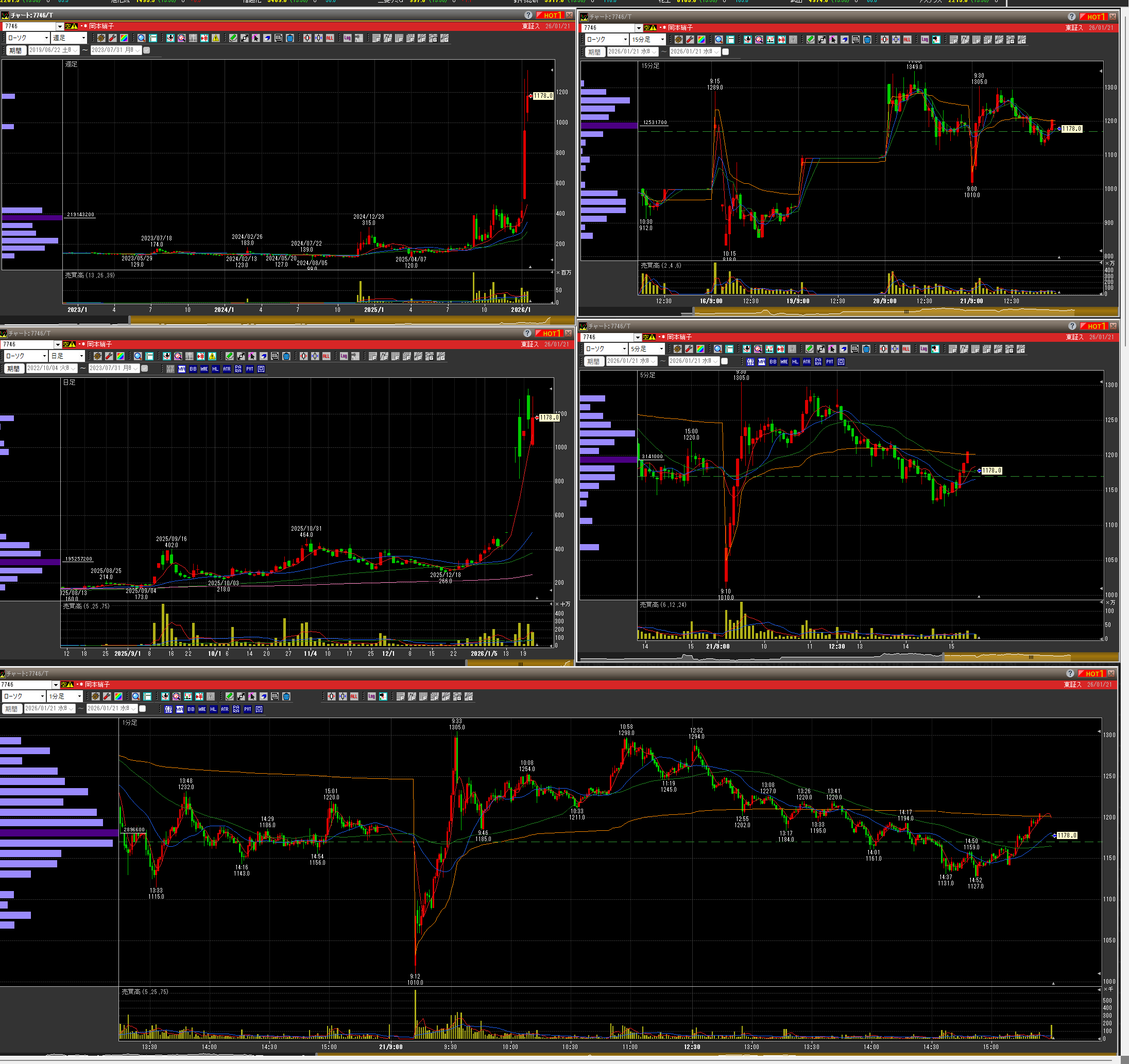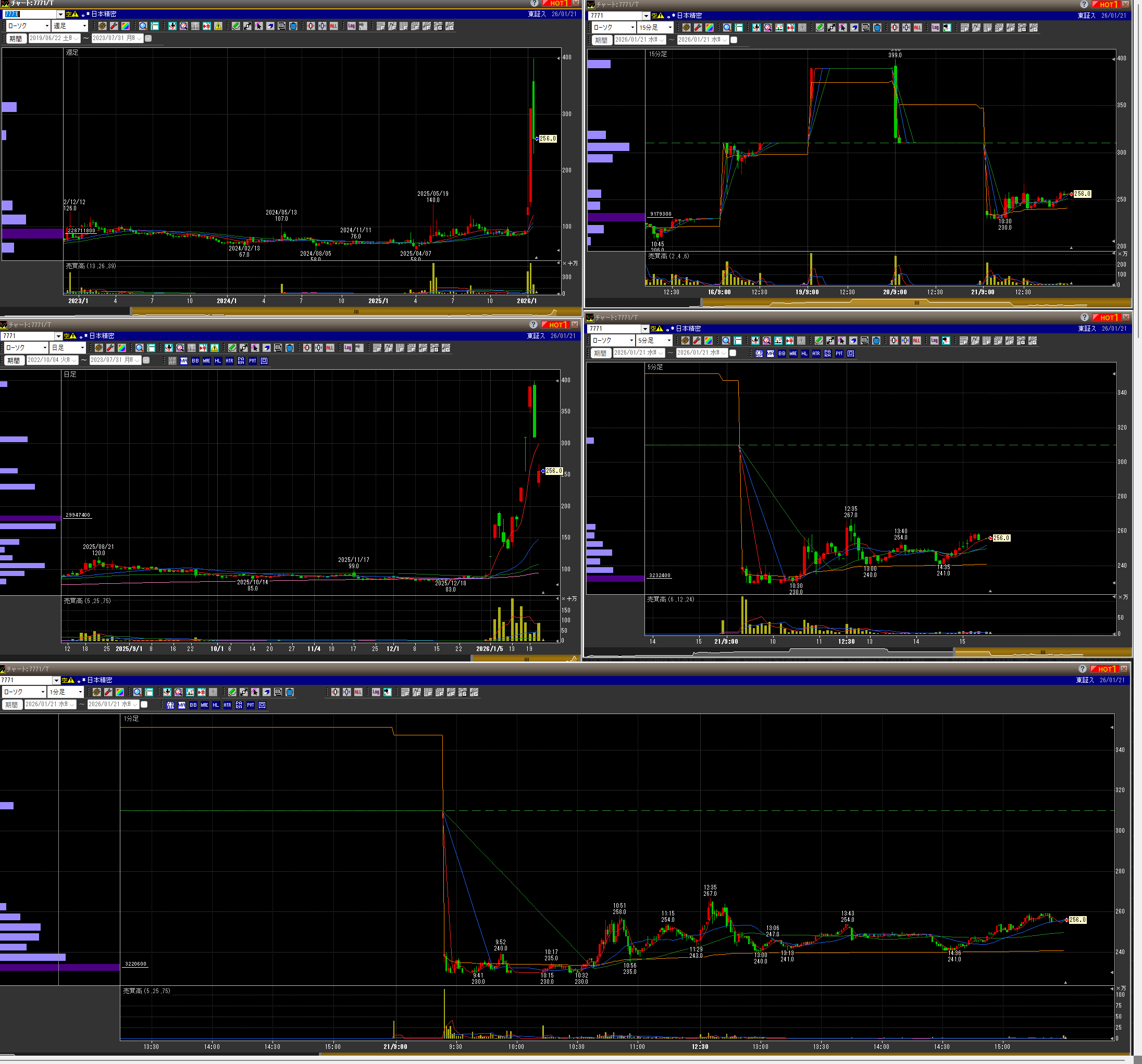 ・プラテンしてからストップ高までいく勢いだったので、買いなおしたらソコが天井