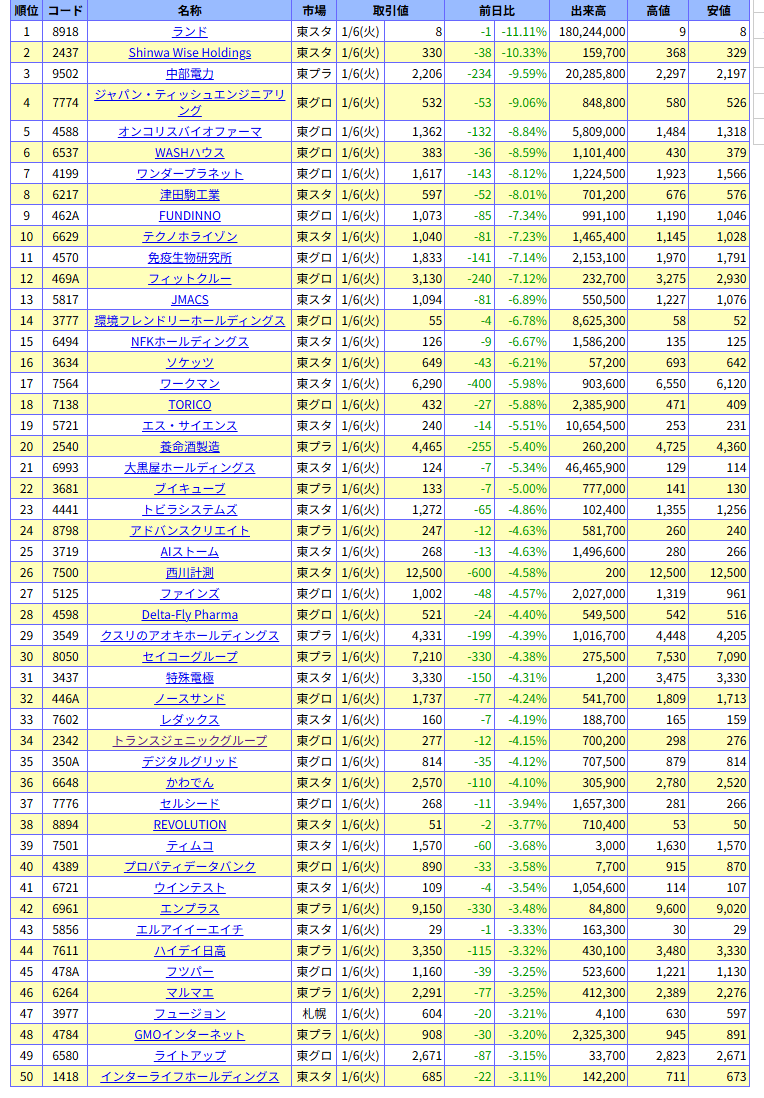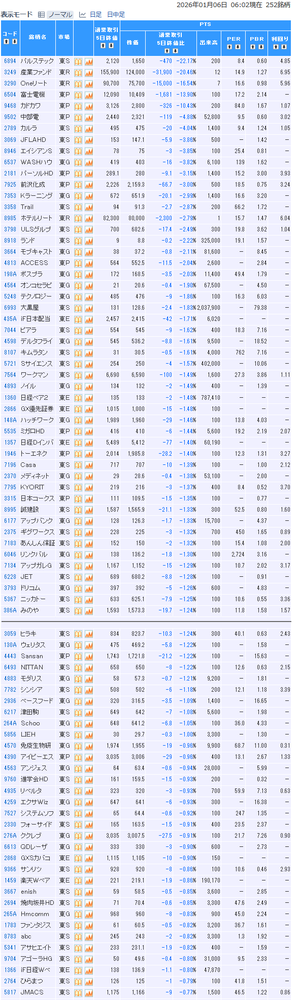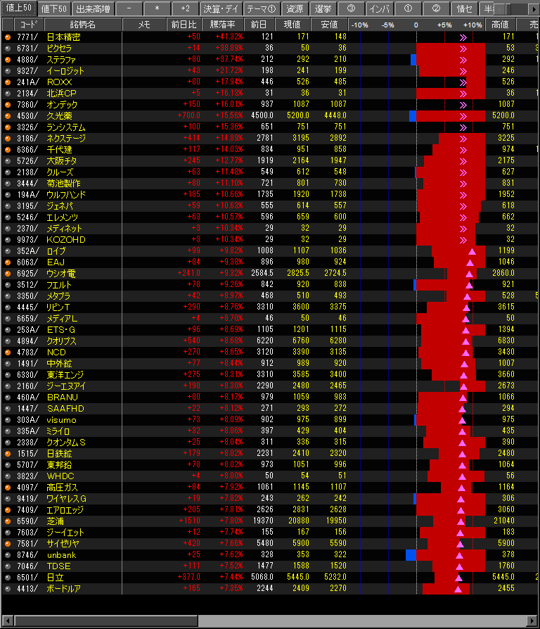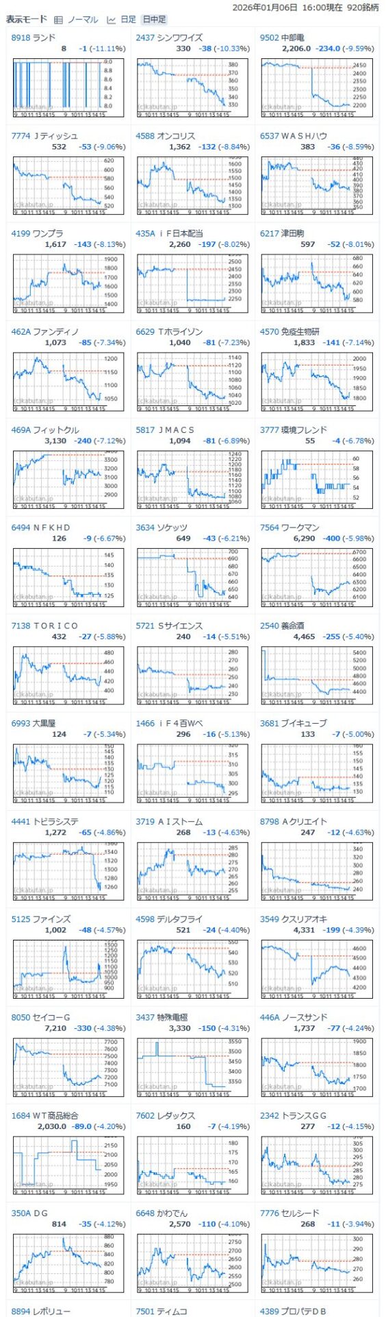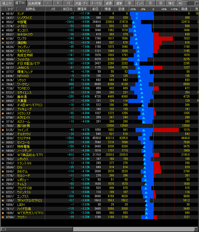 ・数十円抜き狙いで飛び乗り➡ギリギリささらず暴落(一門新値?