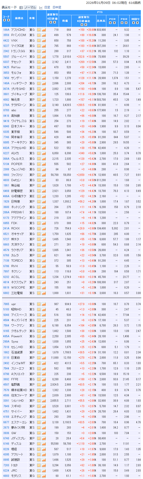 ・夜間レアメタル関連総崩れ➡朝pts&寄り付き気配も崩れ➡東洋エンジニアリングがGDスタートからグイグイ上がってプラテンまで一直線(売り禁・逆日歩10倍?)