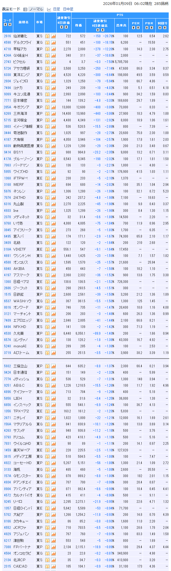 前日pts