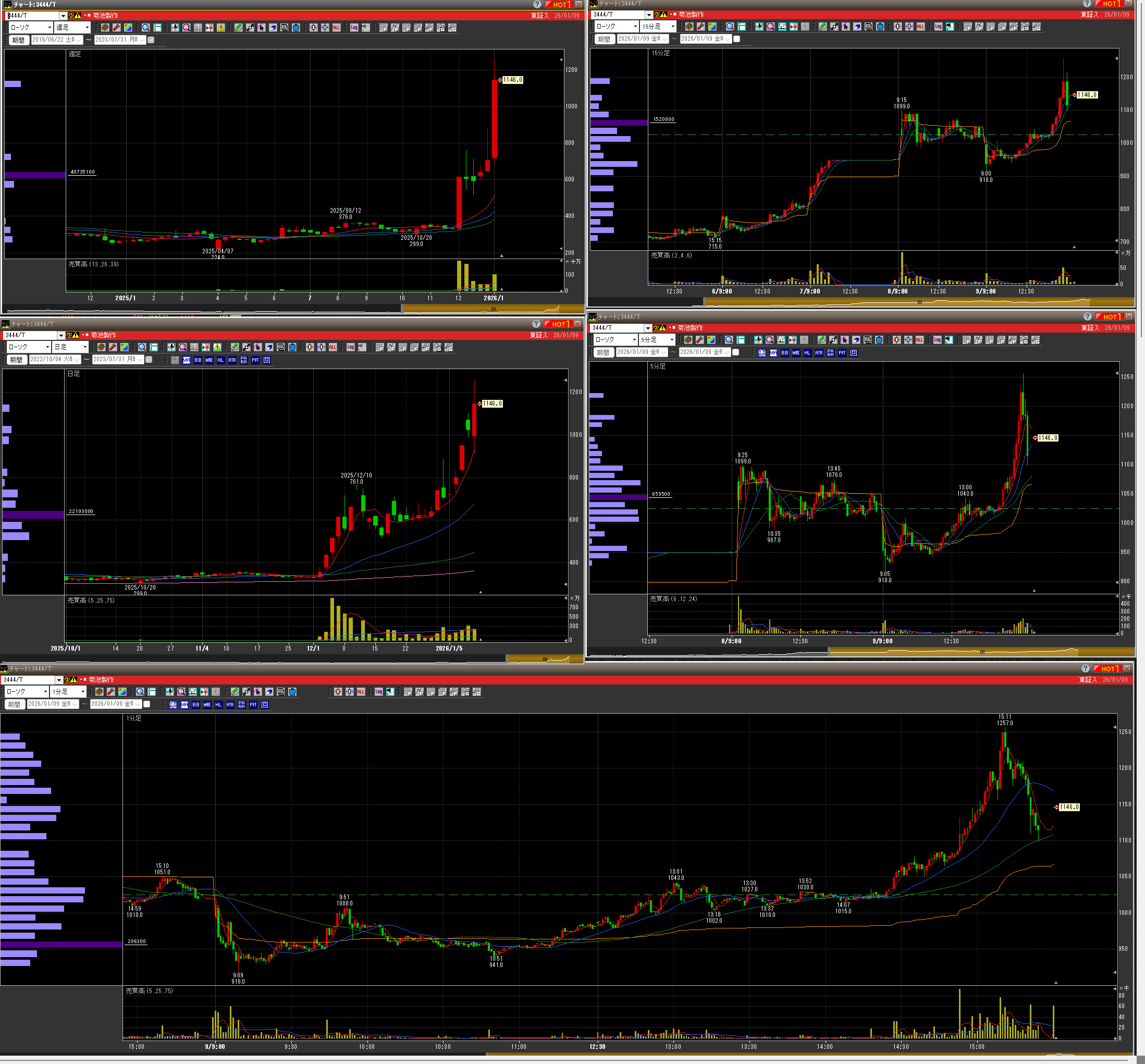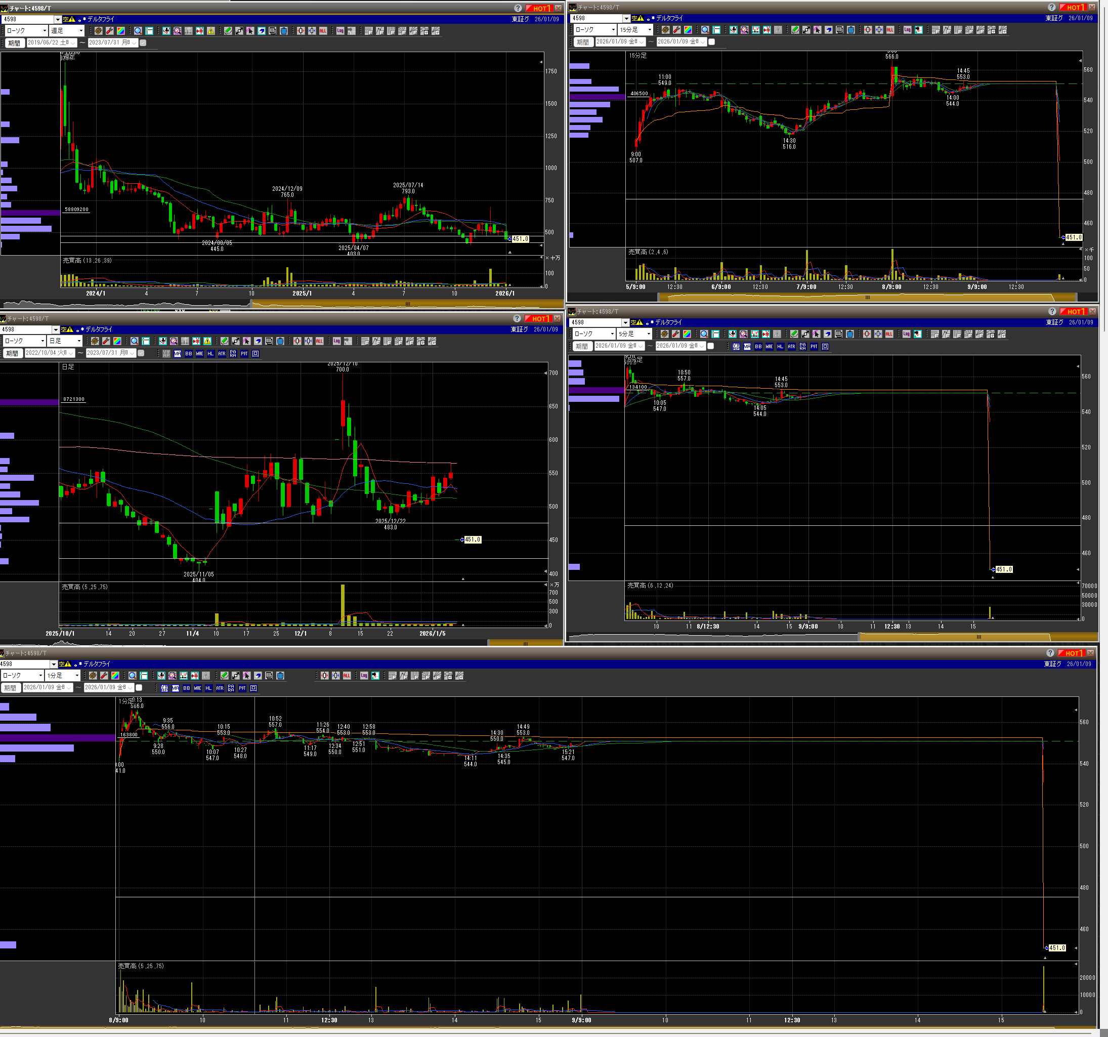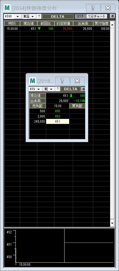 ・15時頃確認すると爆上げてたので、飛び乗りって下で買いなおしたらさらに急落