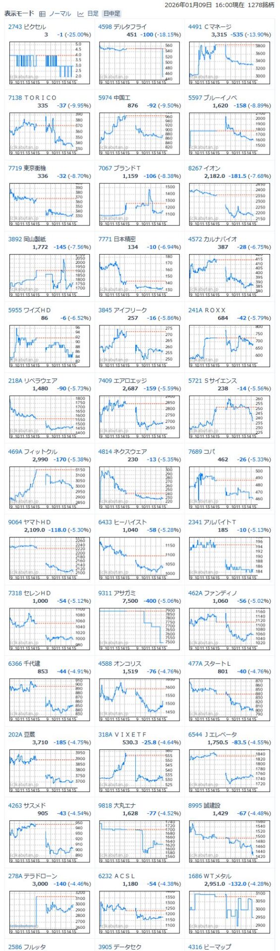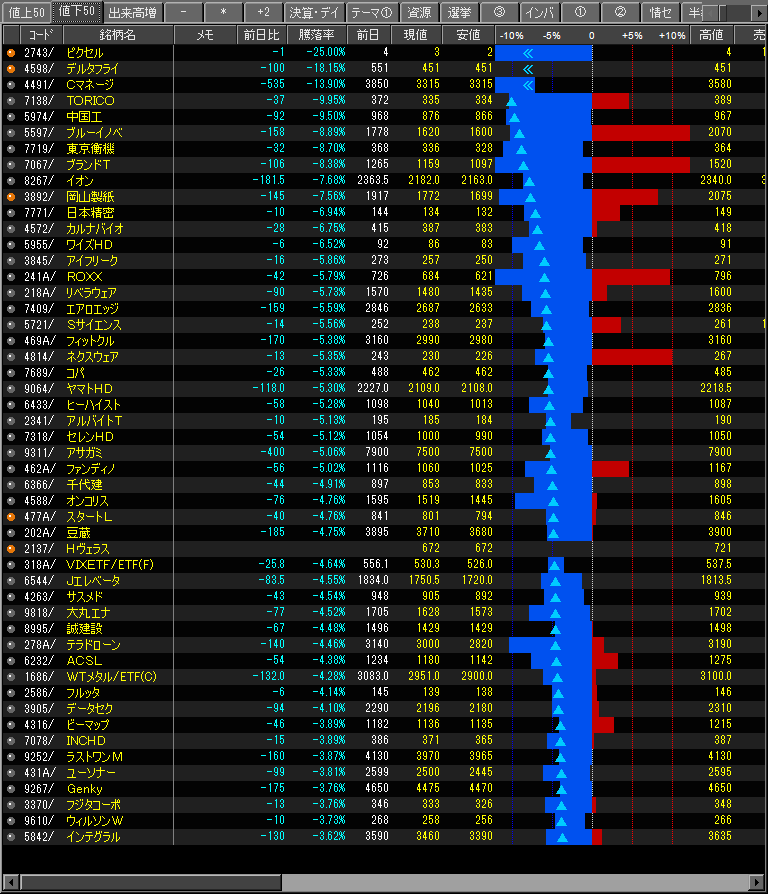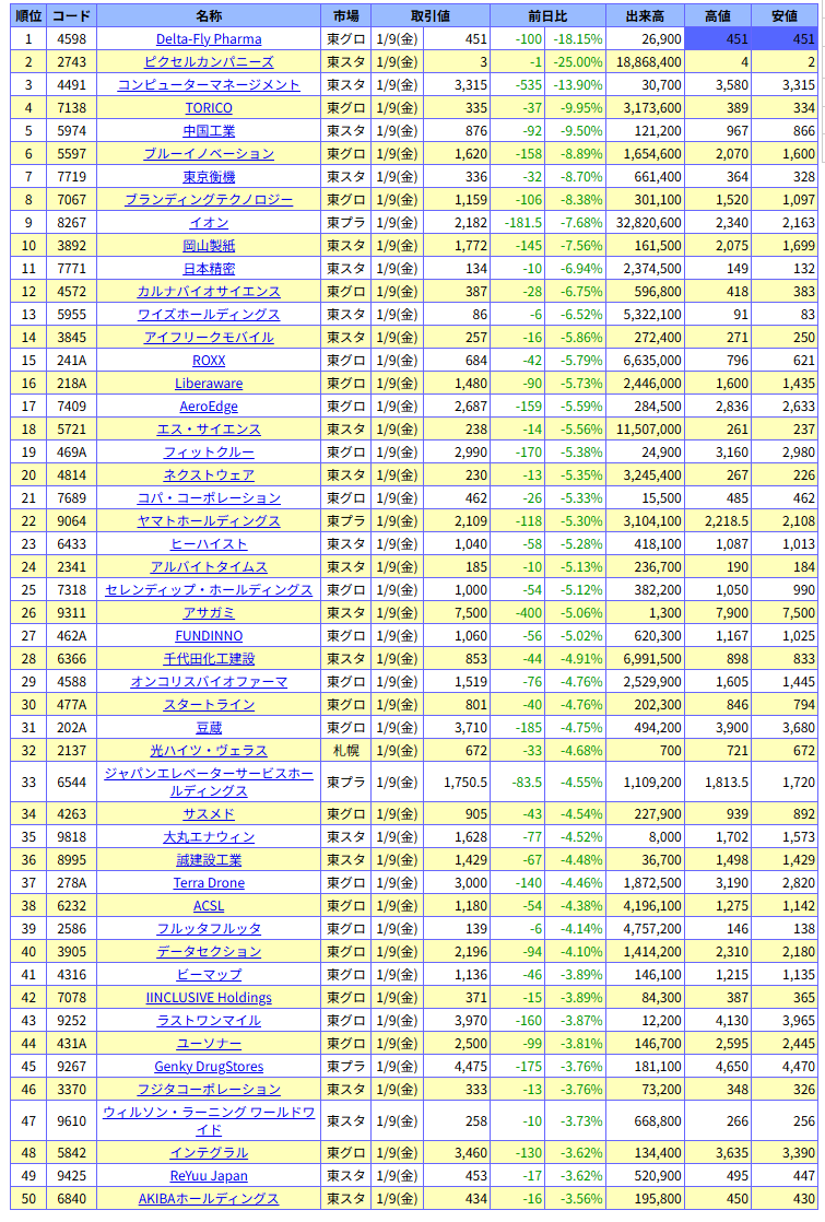 値下がり率ランキング