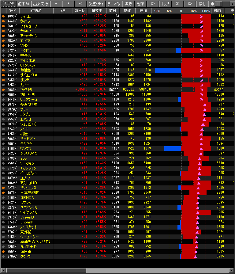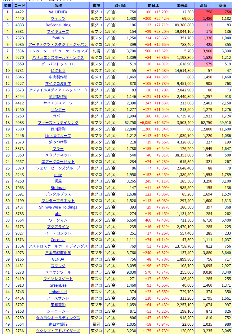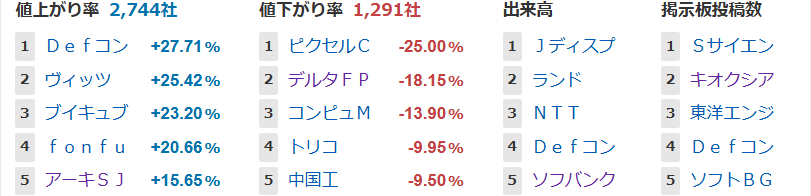 値上がり率ランキング