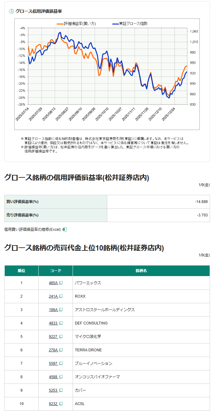 ・現物、信用玉が含み損に