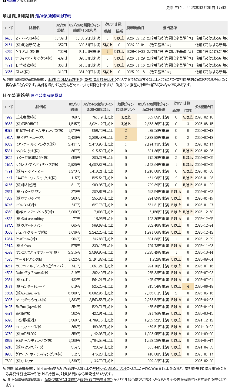 増し担保解除ライン&日々公表