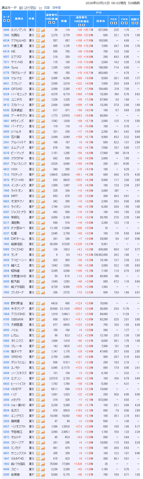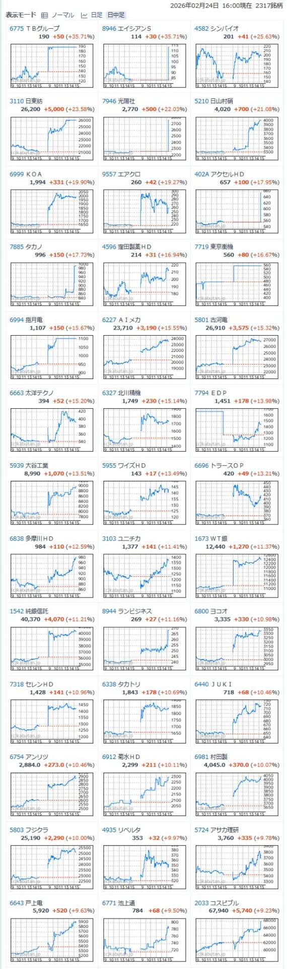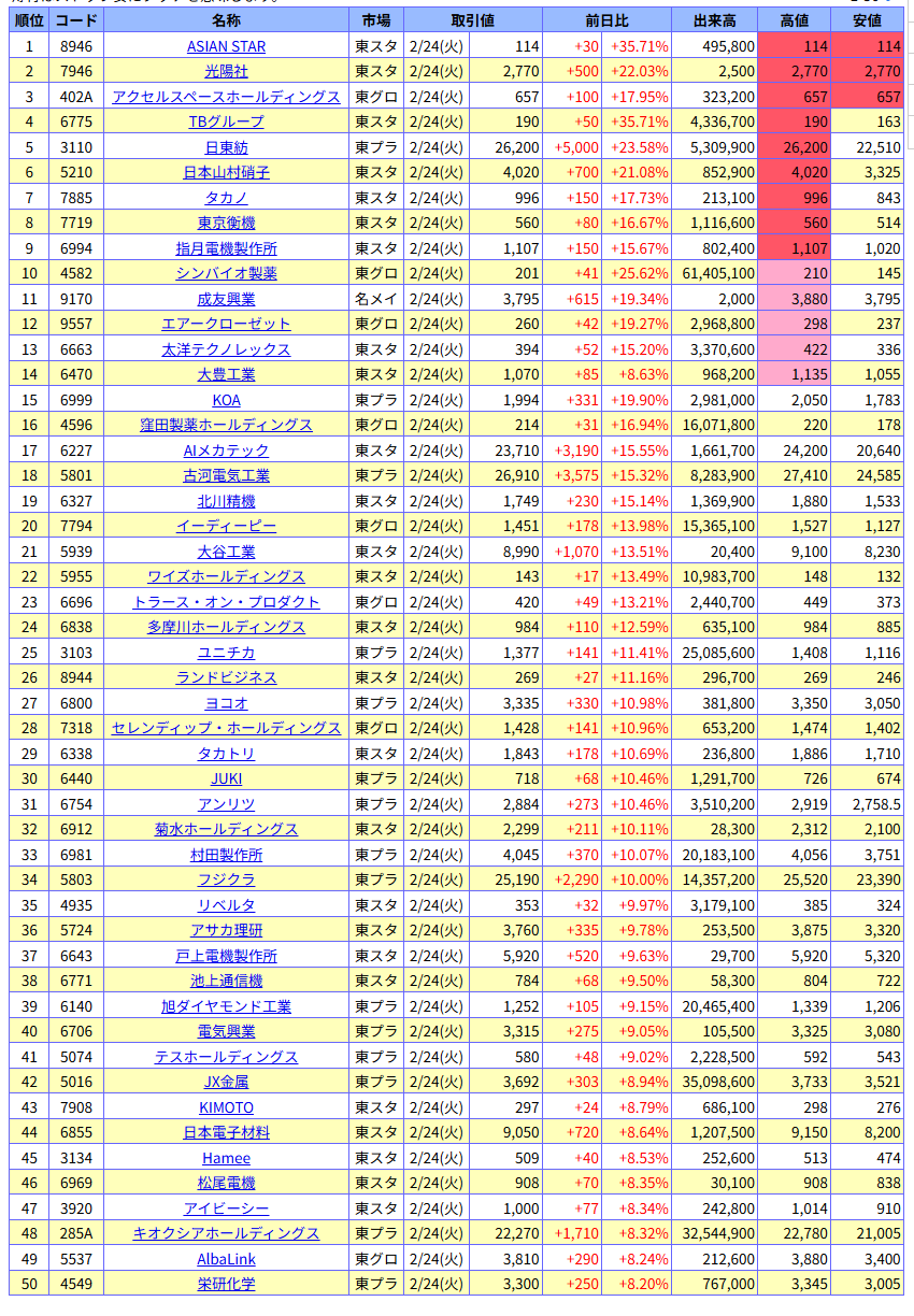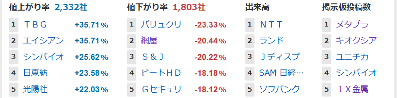値上がり率ランキング