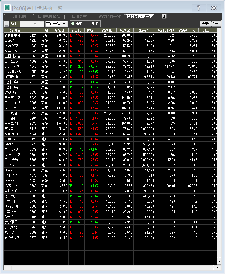 逆日歩ランキング