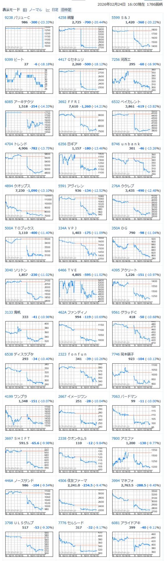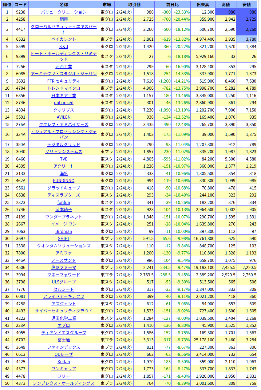 値下がり率ランキング