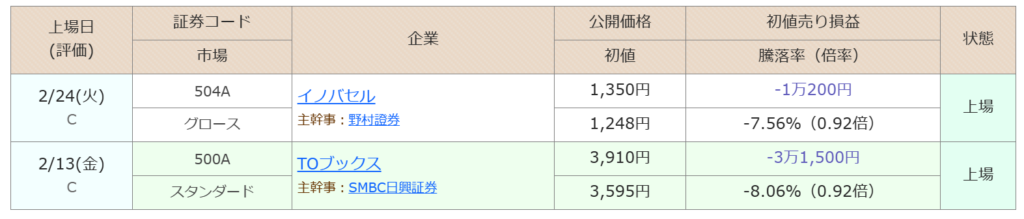 ・上場初日公募割れ