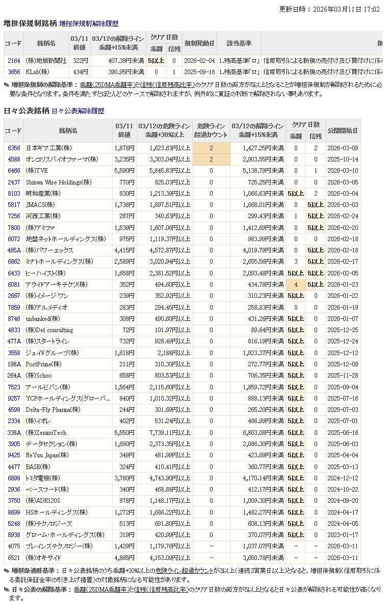 増し担保解除ライン&日々公表
