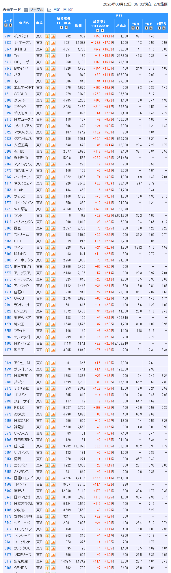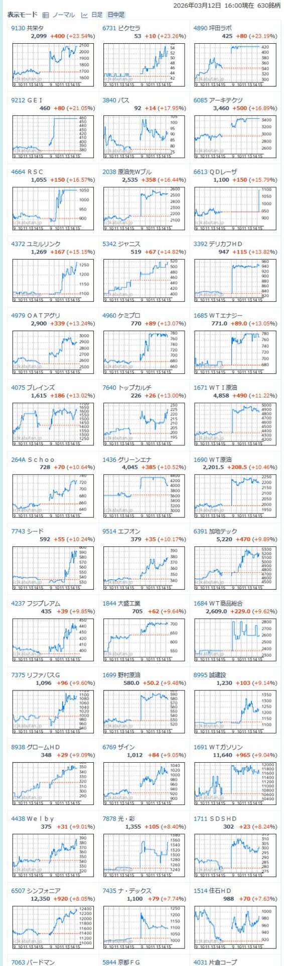 値上がり率ランキング