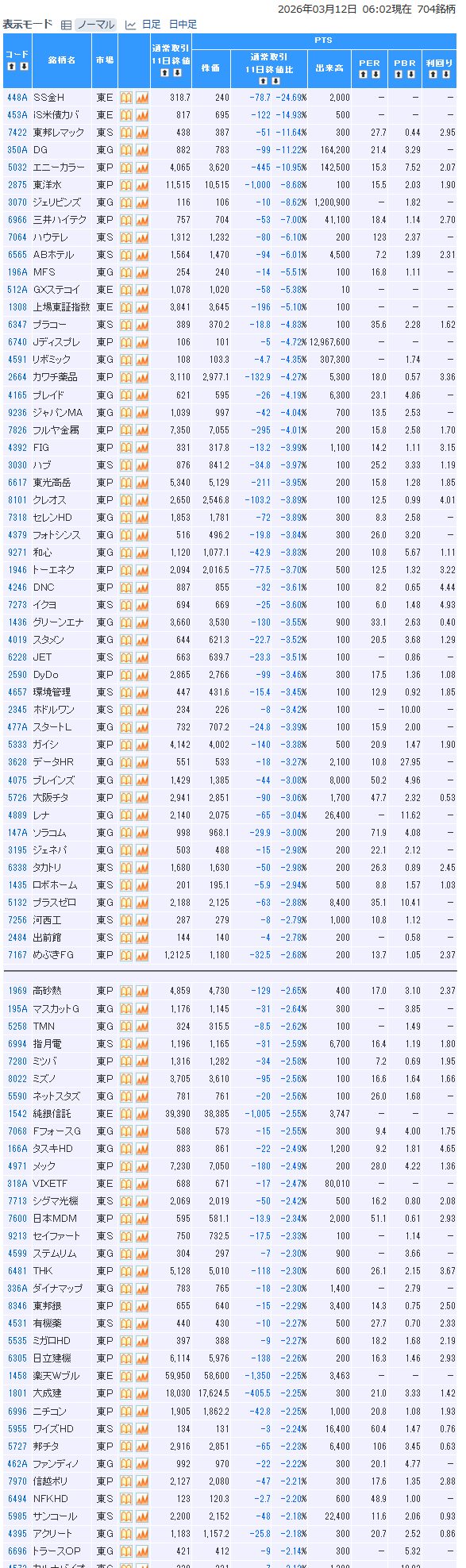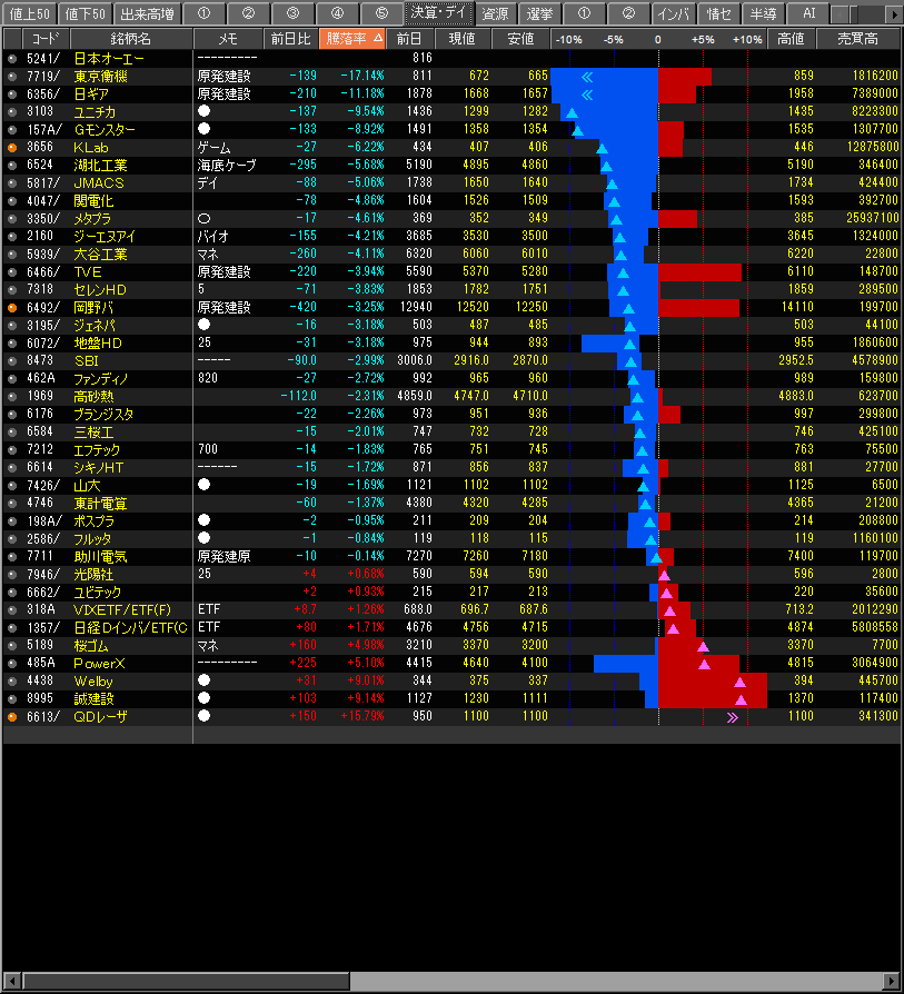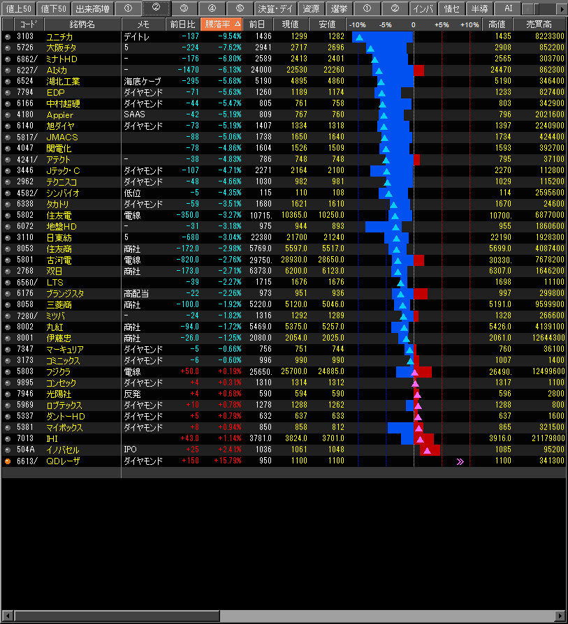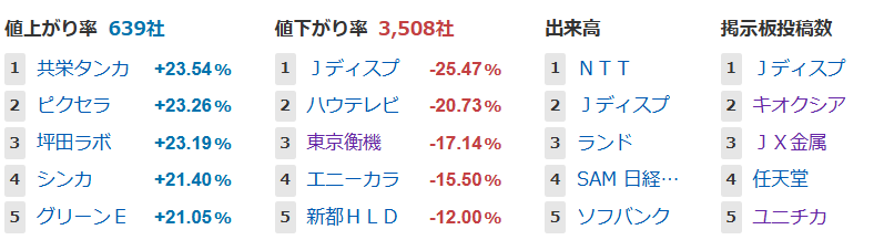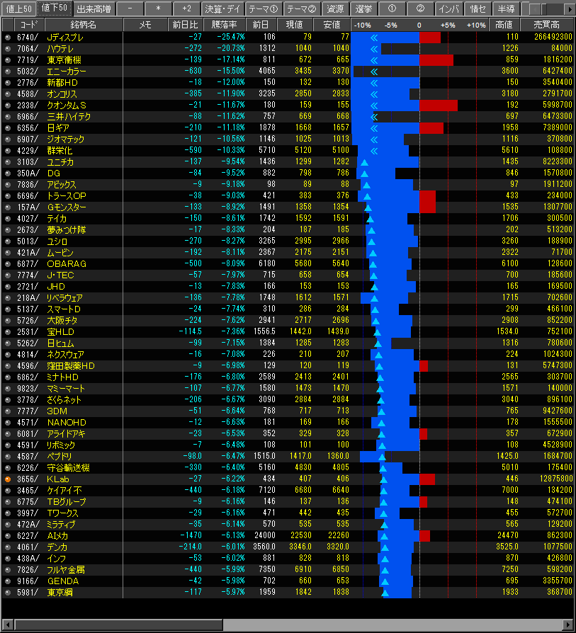 値下がり率ランキング