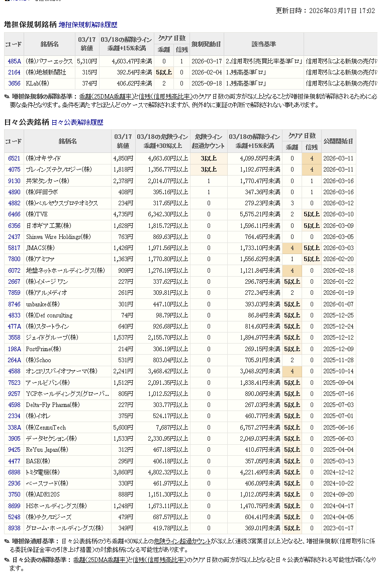 増し担保解除ライン&日々公表