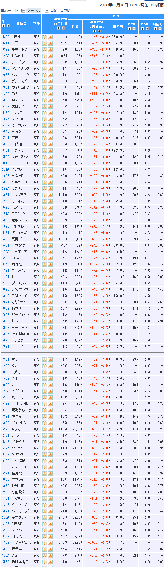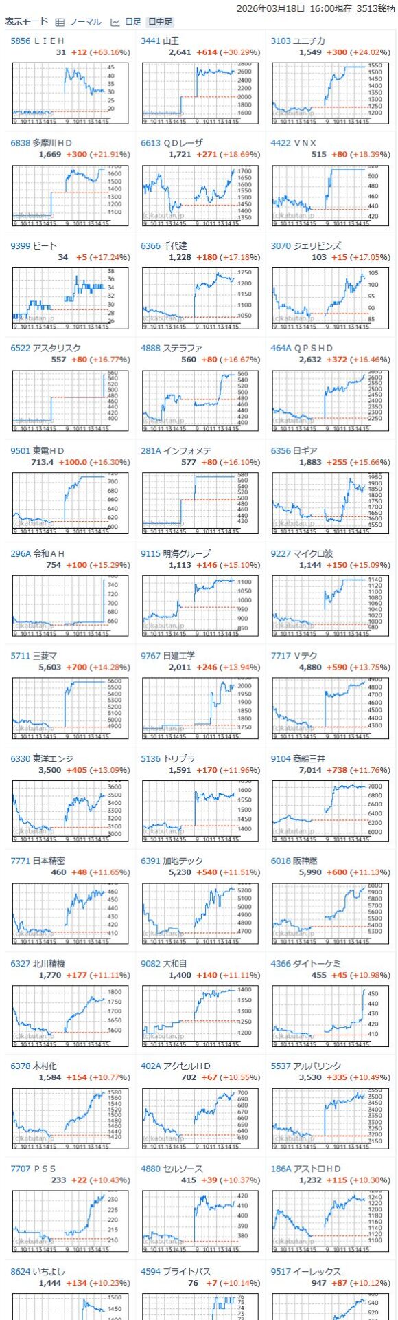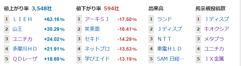 値上がり率ランキング
