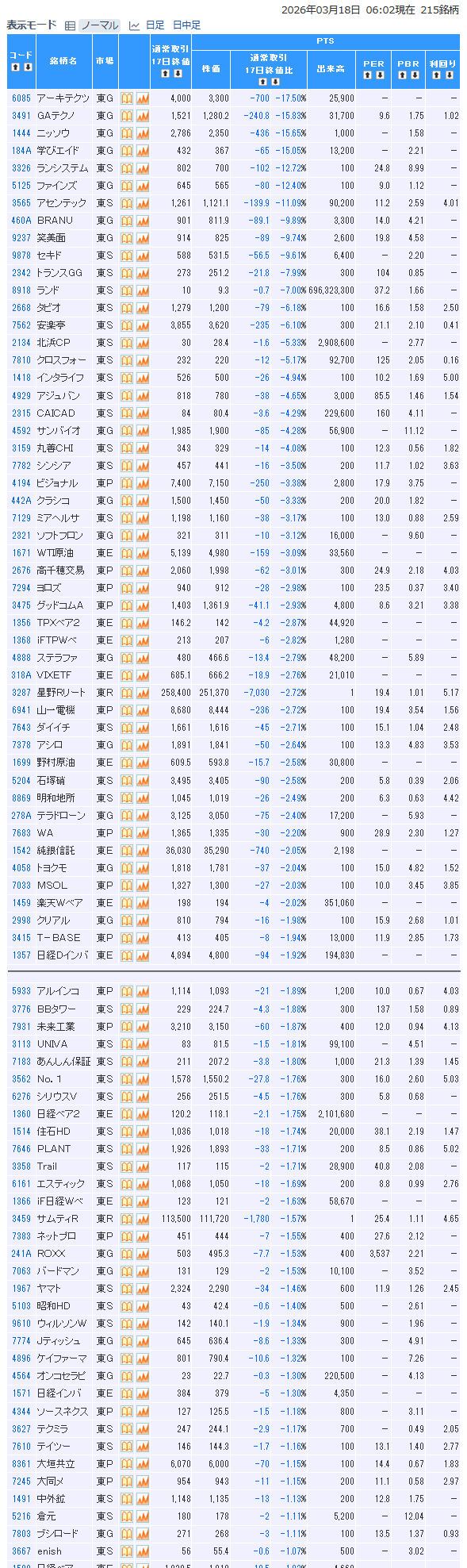 前日pts